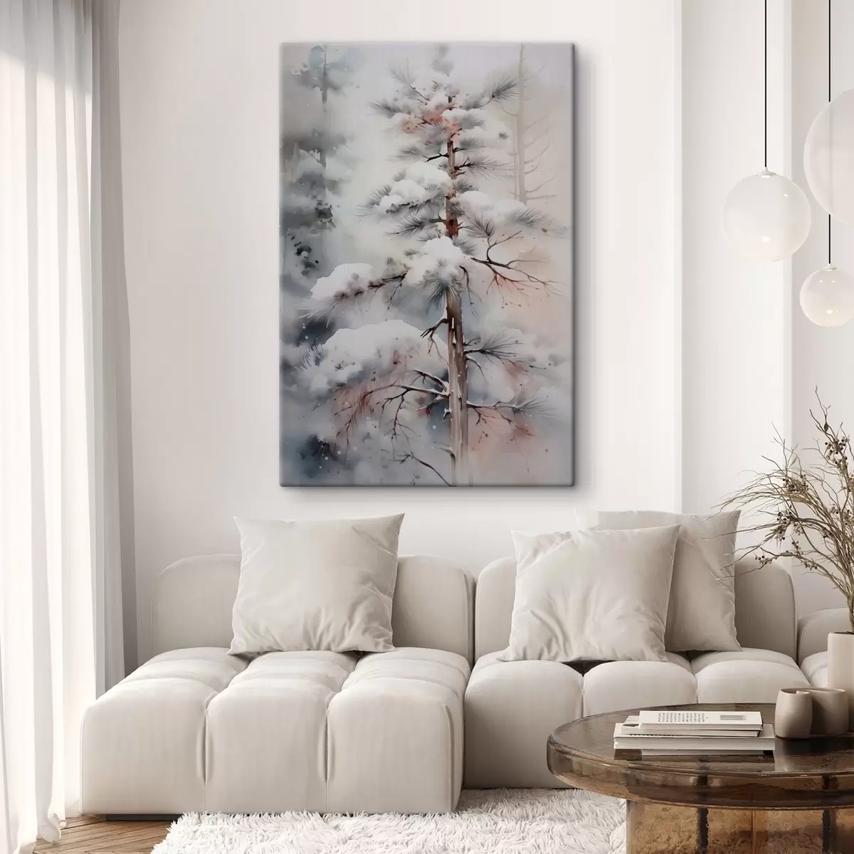 Obraz Drzewo w zaśnieżonym lesie imitacja akwareli Nr s42139