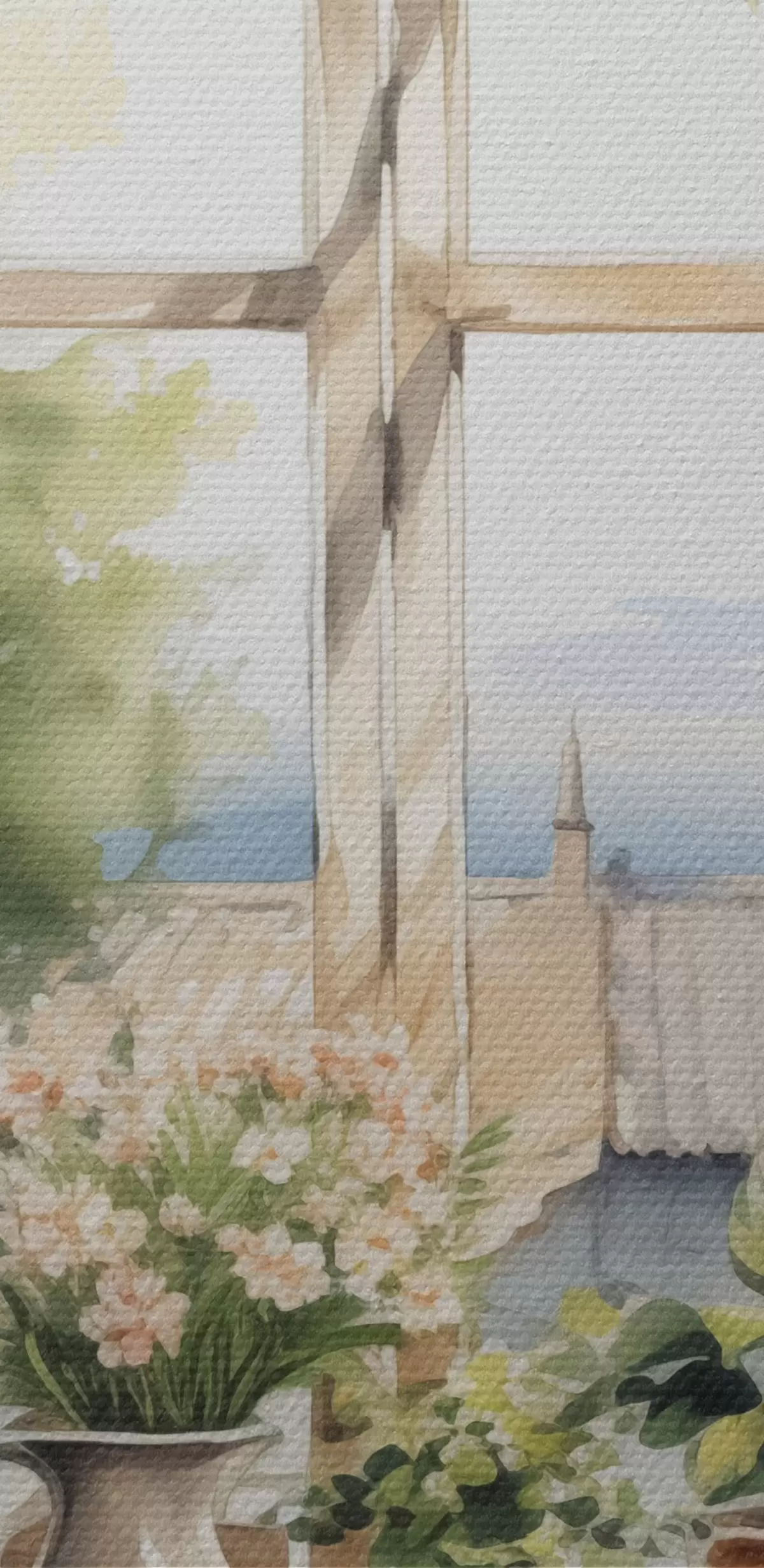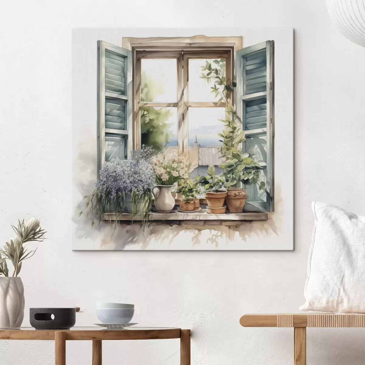 Obraz Roślinność na parapecie imitacja akwareli s42144