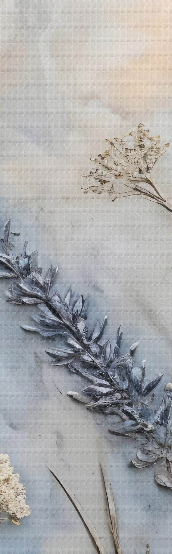 Obraz Pole różnych polnych kwiatów i roślin w odcieniach niebieskiego, białego i beżowego na miękkim, zamglonym tle s42214