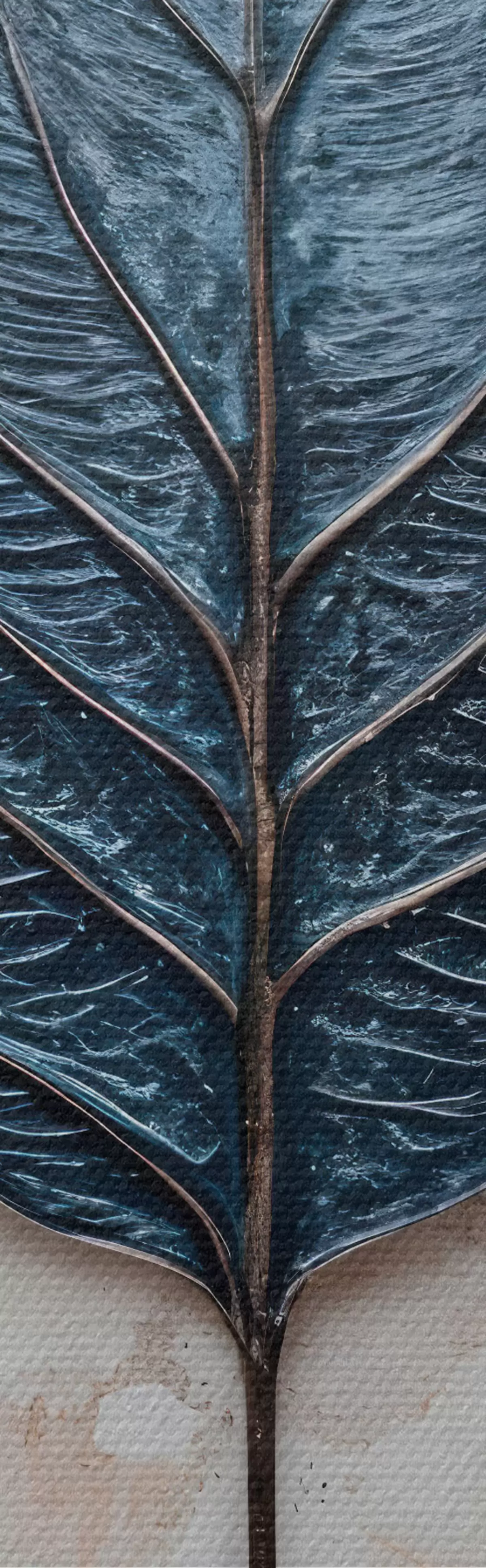 Obraz Różne jesienne abstrakcyjne liście w różnych odcieniach brązu, beżu i niebieskiego ułożone w rzędzie na jasnym tle Nr s42217