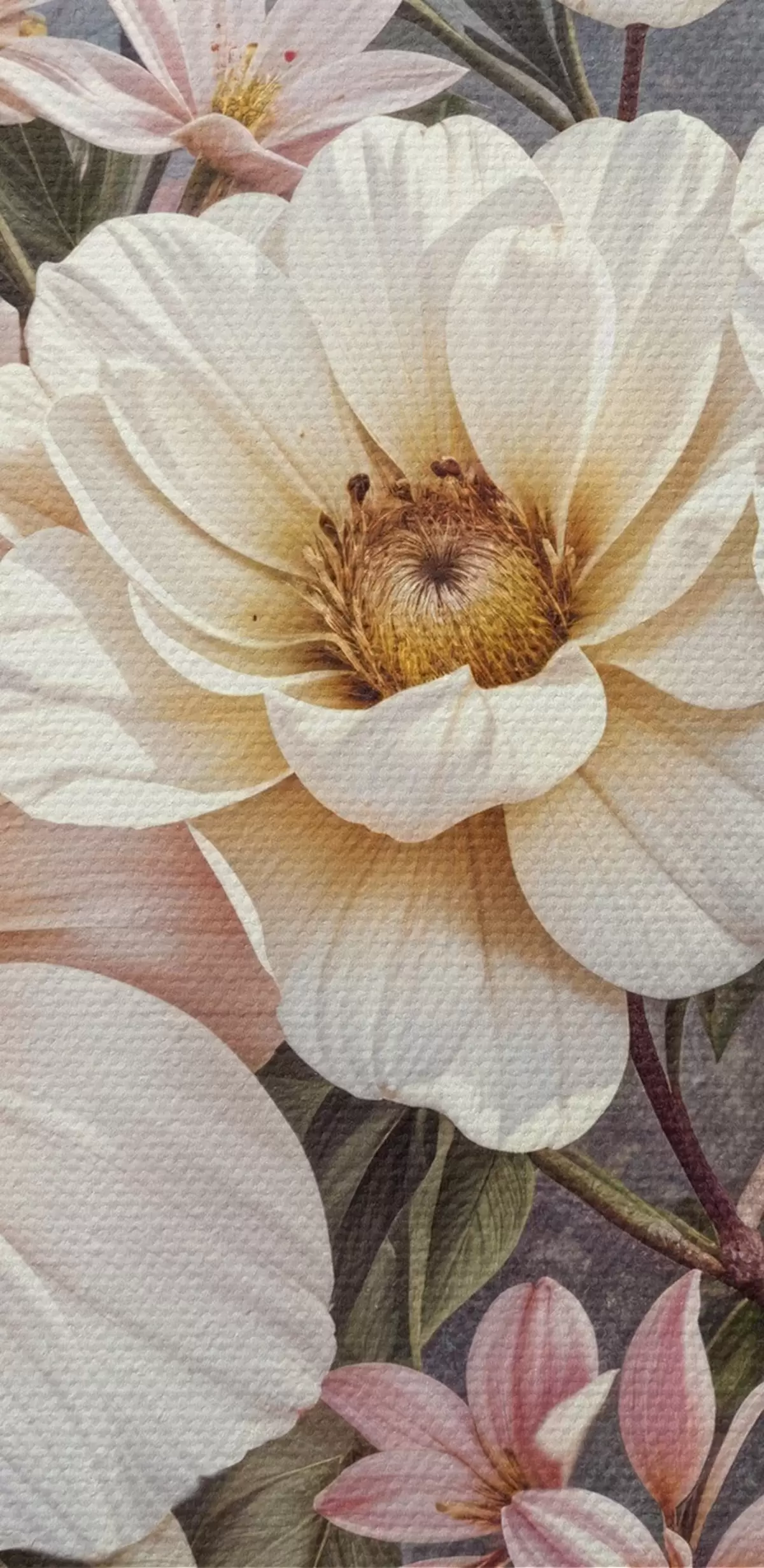 Drobny splot nici na tym płótnie przypomina powierzchnię profesjonalnych płócien artystycznych.