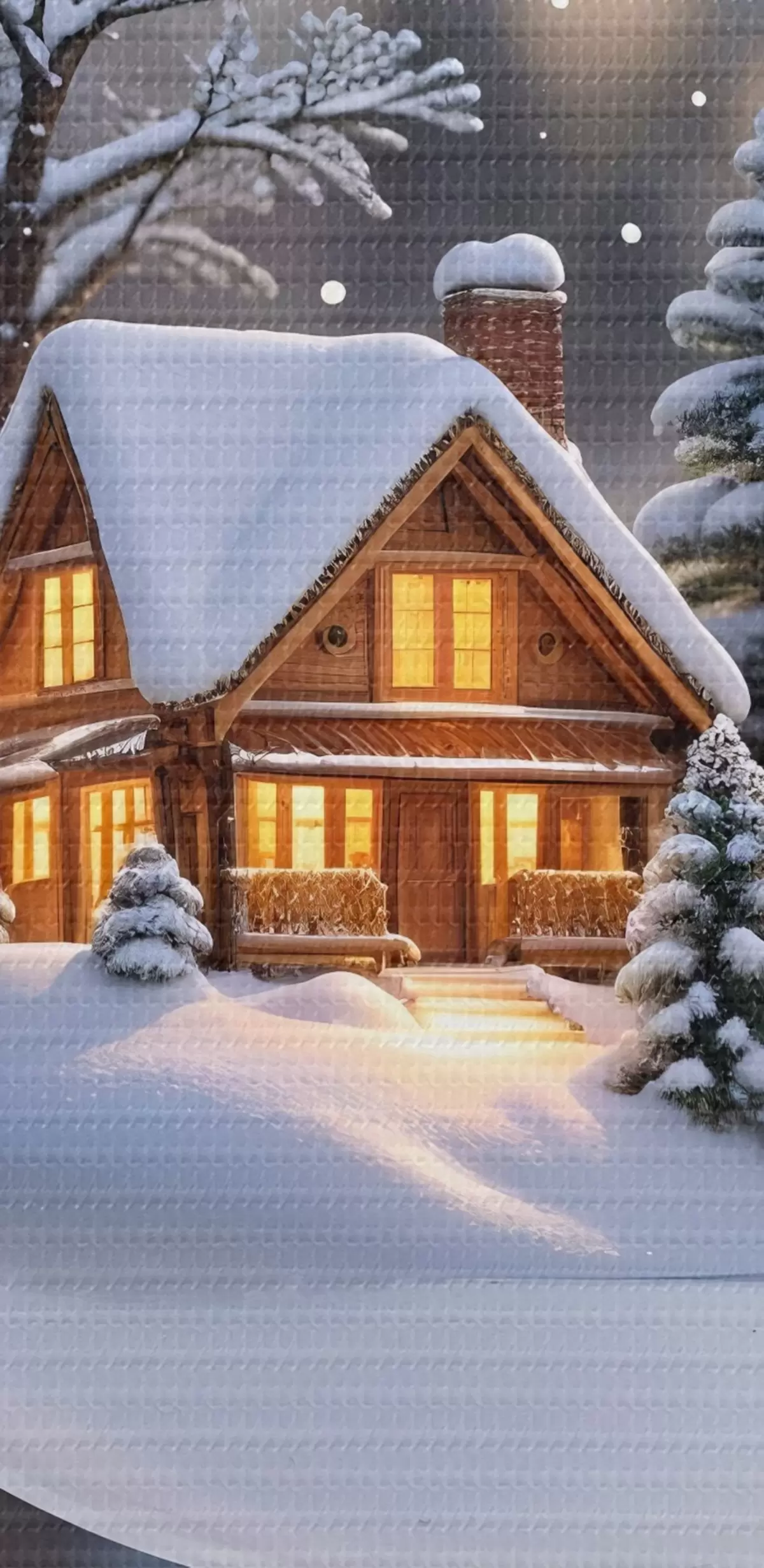 Obraz Szklana kula bożonarodzeniowa z zaśnieżonym zimowym krajobrazem wewnątrz, przedstawiającym przytulną chatkę w lesie z sosnami Nr s42236