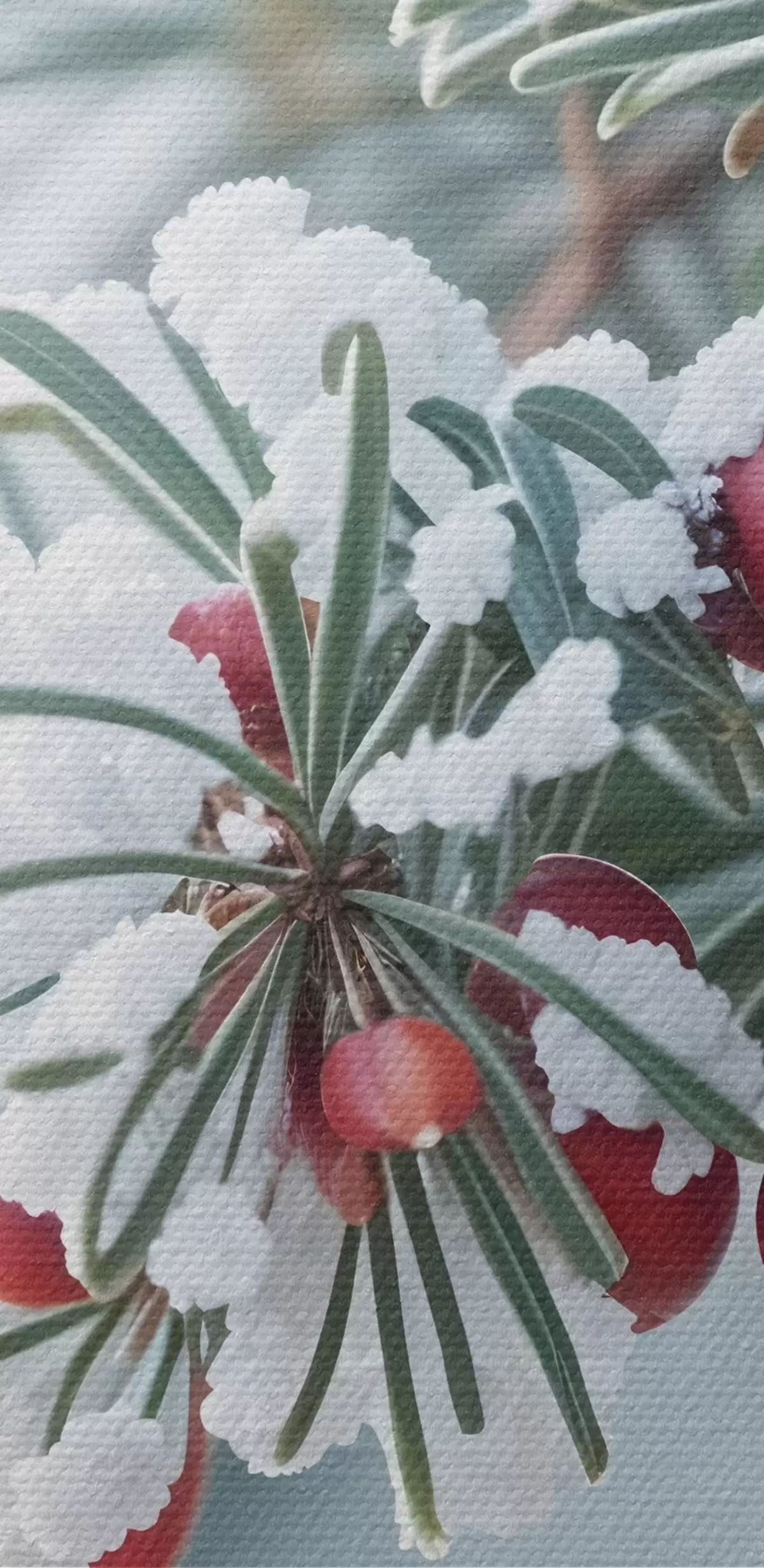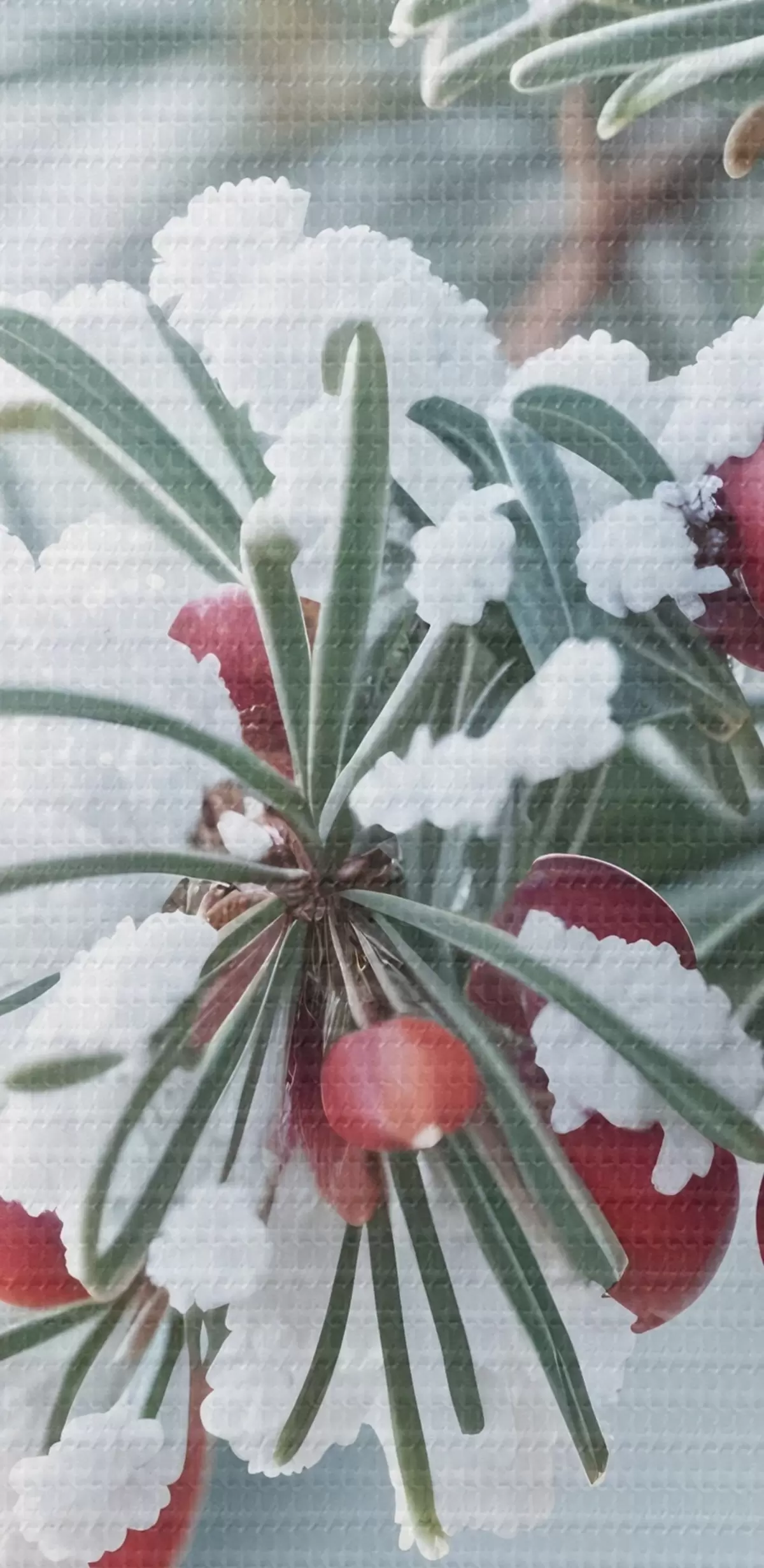 Obraz Ośnieżona gałąź sosny z czerwonymi jagodami, scena zimowa Nr s42238