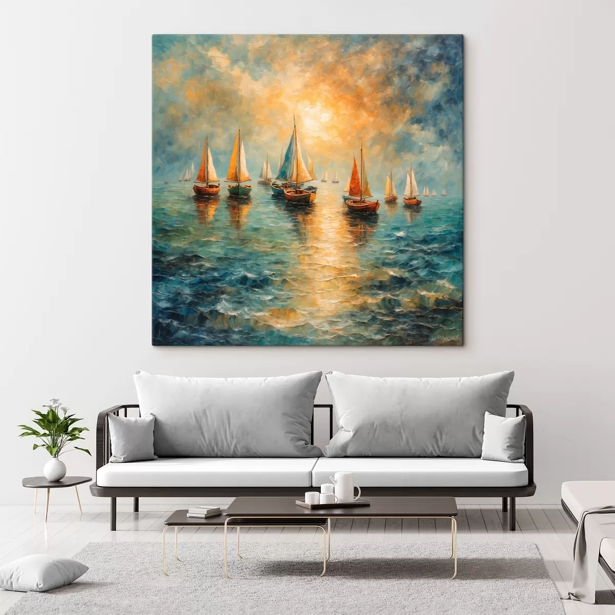 Obraz Statki płynące ku zachodzącemu słońcu Nr s42251