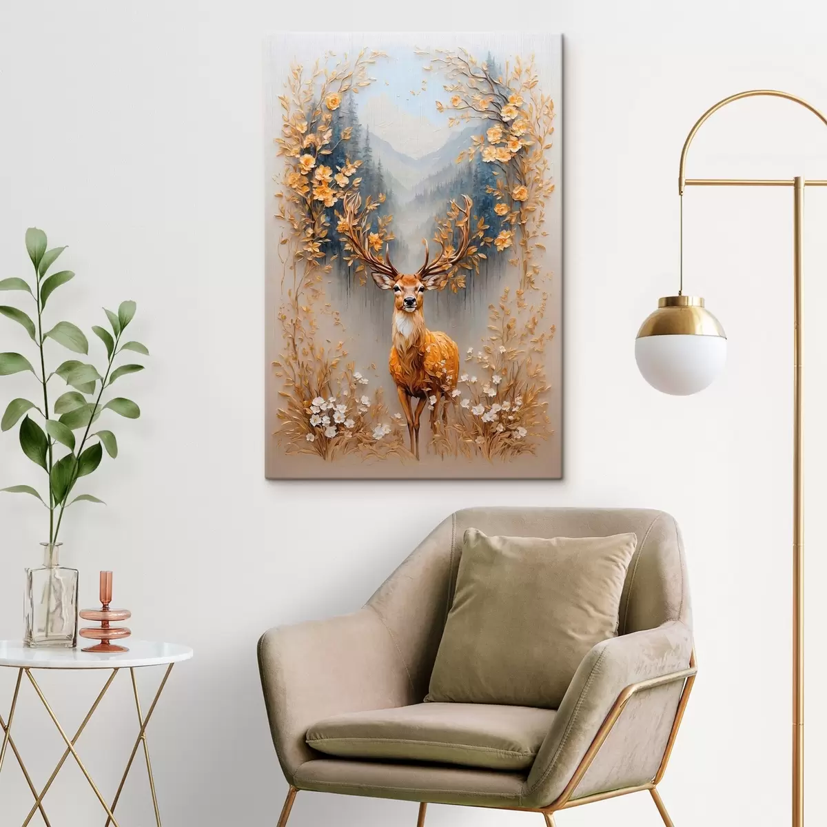 Obraz Jeleń z dużym porożem na tle lasu Nr s42252