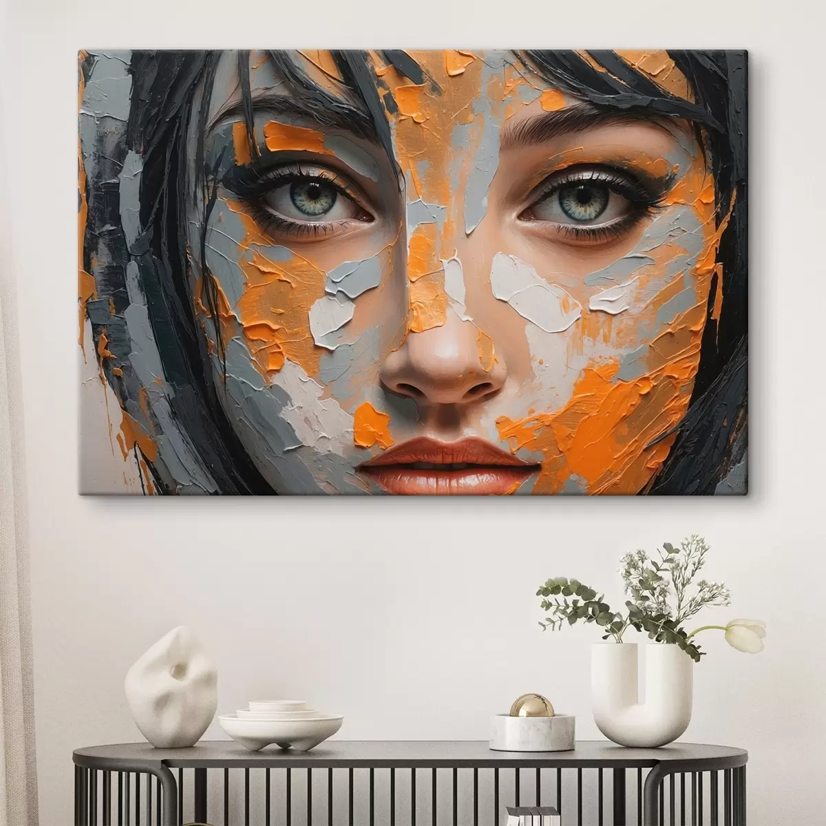 Obraz Twarz dziewczynki pomalowana białą i żółtą farbą Nr s42259