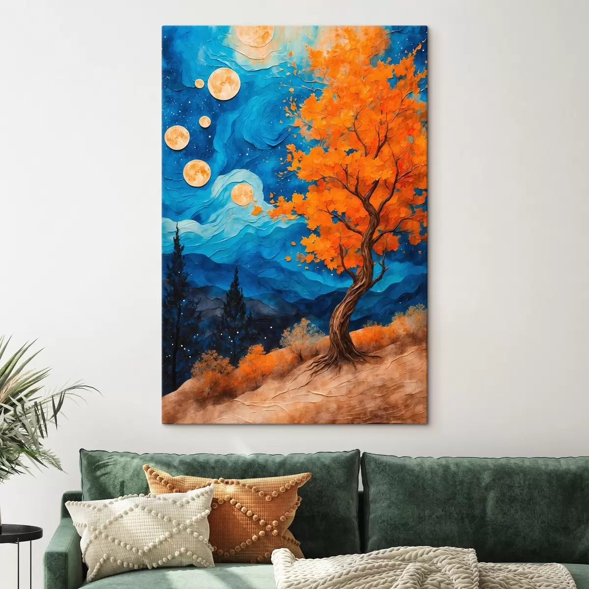 Obraz Drzewo rosnące na wzgórzu nocą Nr s42274