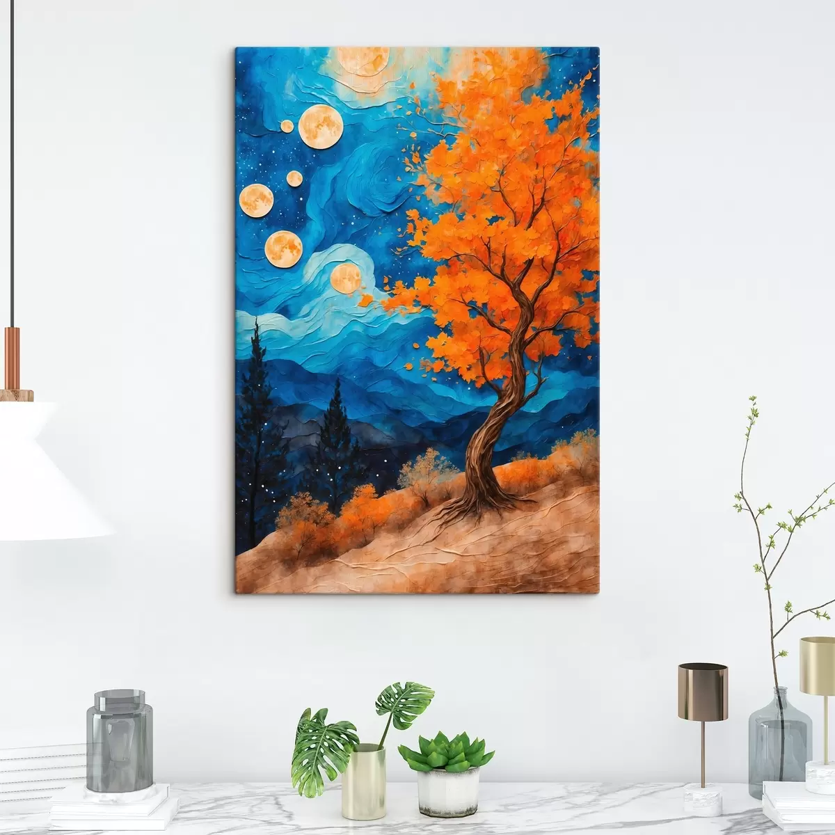 Obraz można powiesić natychmiast po jego otrzymaniu. Obraz zostanie naciągnięty na drewniany blejtram o szerokości 2 cm.