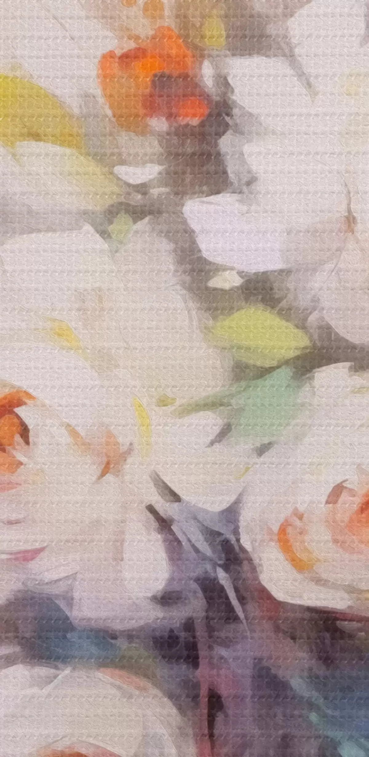 Drobny splot nici na tym płótnie przypomina powierzchnię profesjonalnych płócien artystycznych.