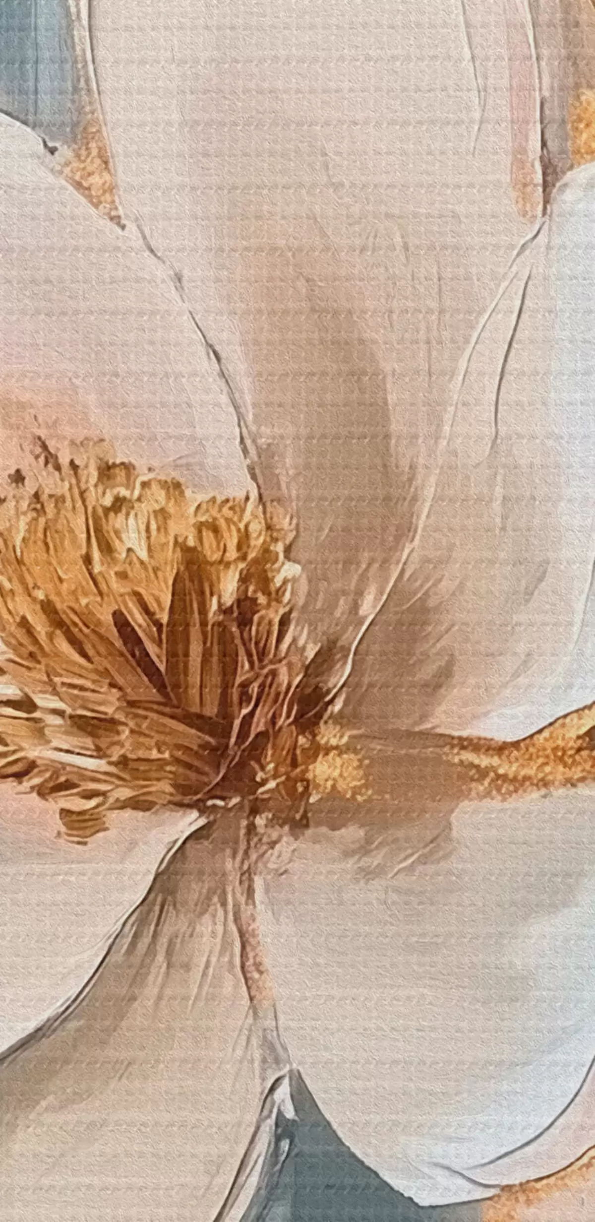 Drobny splot nici na tym płótnie przypomina powierzchnię profesjonalnych płócien artystycznych.