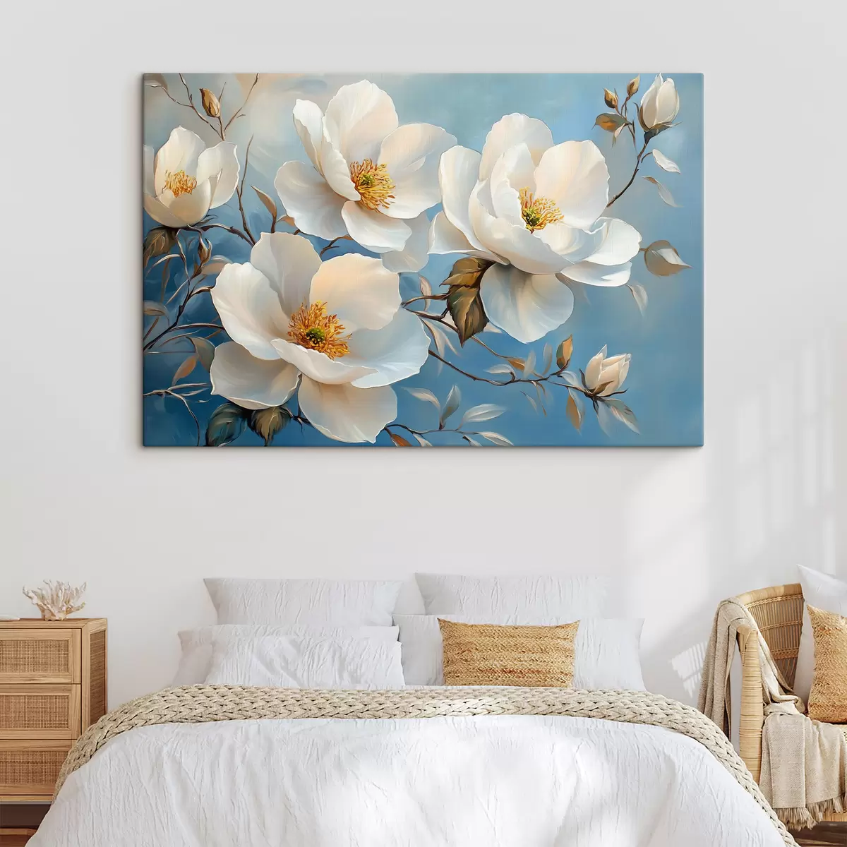 Obraz Duże białe kwiaty na niebieskim tle Nr s42321