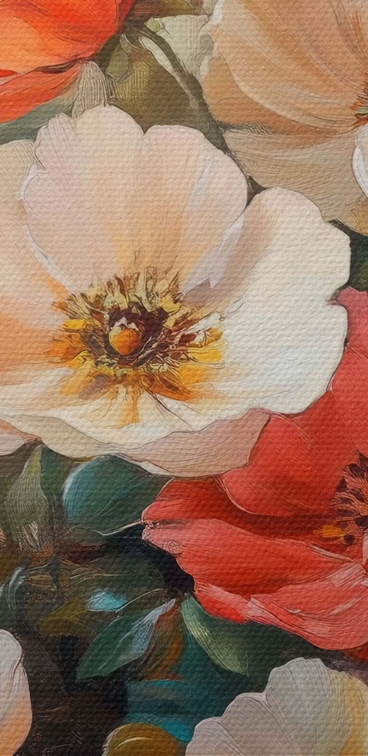 Do zamówienia dostępne są trzy rodzaje materiału: Economic Canvas - gęsty i trwały materiał do druku cyfrowego, identyczny z płótnem malarskim, wodoodporna powierzchnia, realistyczne odwzorowanie szczegółów, materiał średnioziarnisty. Premium Canvas - tekstura przypominająca płótno malarskie (przeplatane drobne nitki). Miękka, szczegółowa reprodukcja obrazu na matowej powierzchni. Eco-Premium - wysokiej jakości tkanina w 100% bawełniana. Dzięki naturalnym włóknom bawełnianym materiał jest trwały i odporny na zużycie. Doskonałe odwzorowanie kolorów i szczegółów.