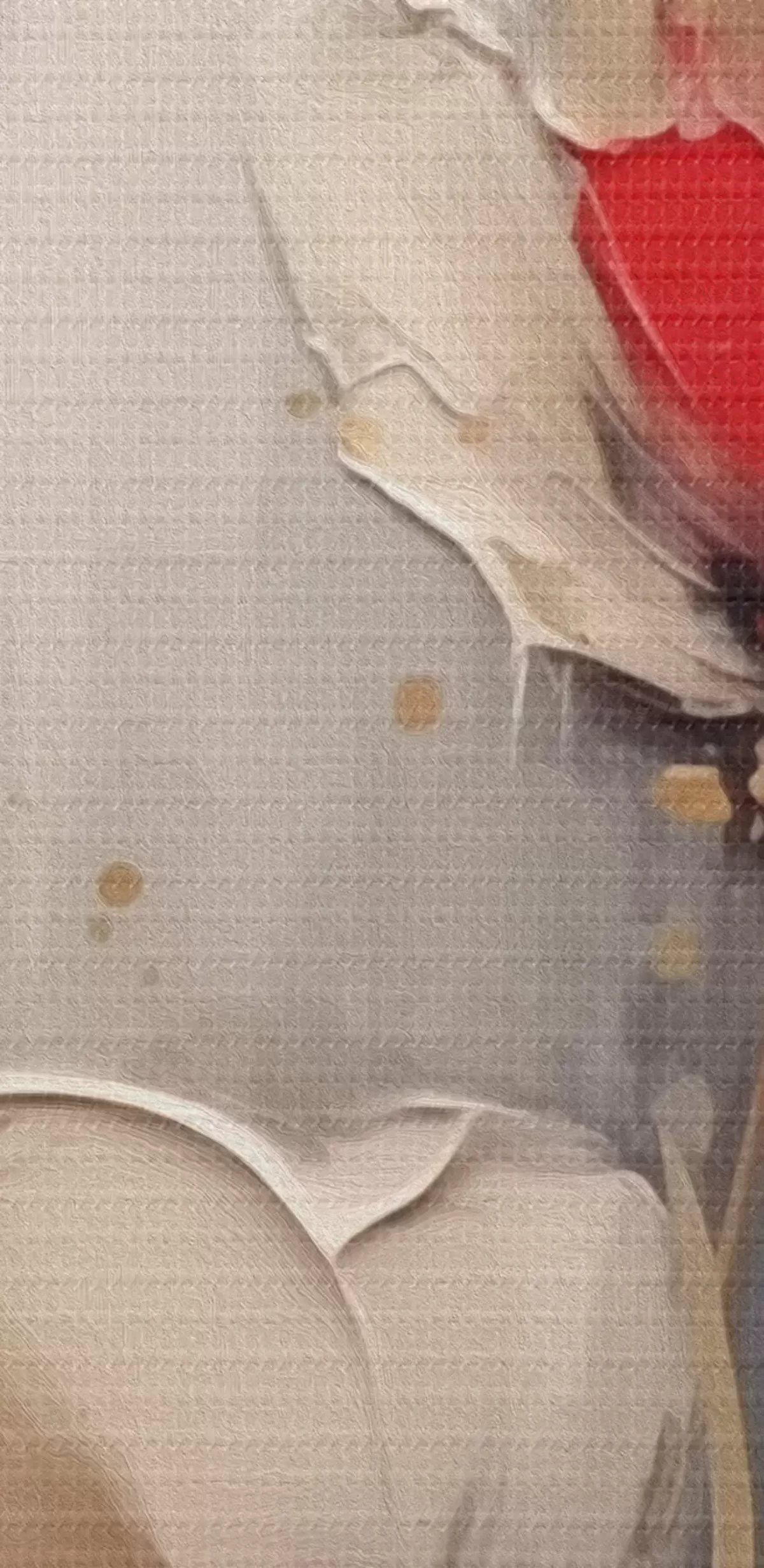 Drobny splot nici na tym płótnie przypomina powierzchnię profesjonalnych płócien artystycznych.