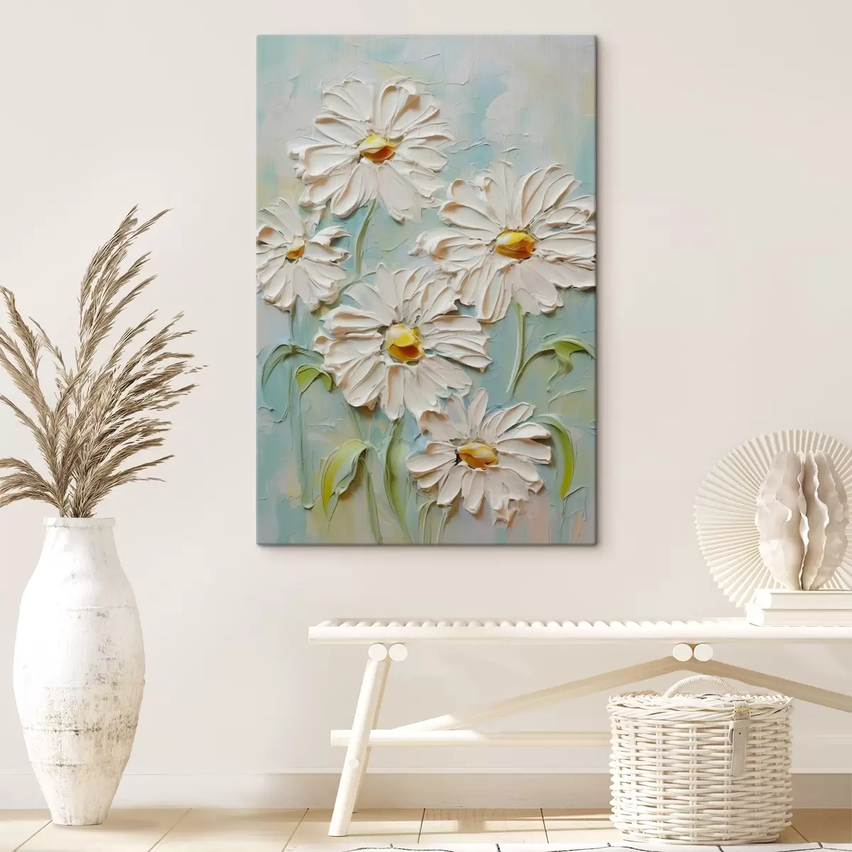 Obraz Białe stokrotki imitujące pociągnięcia farby s42422