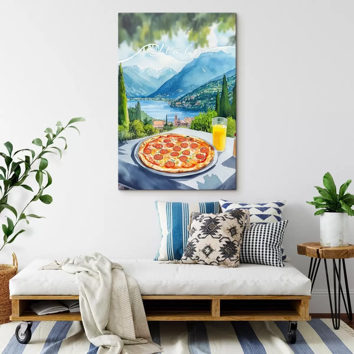 Obraz Styl akwareli, Włochy, pizza, stare miasto, krajobraz górski Nr s42435