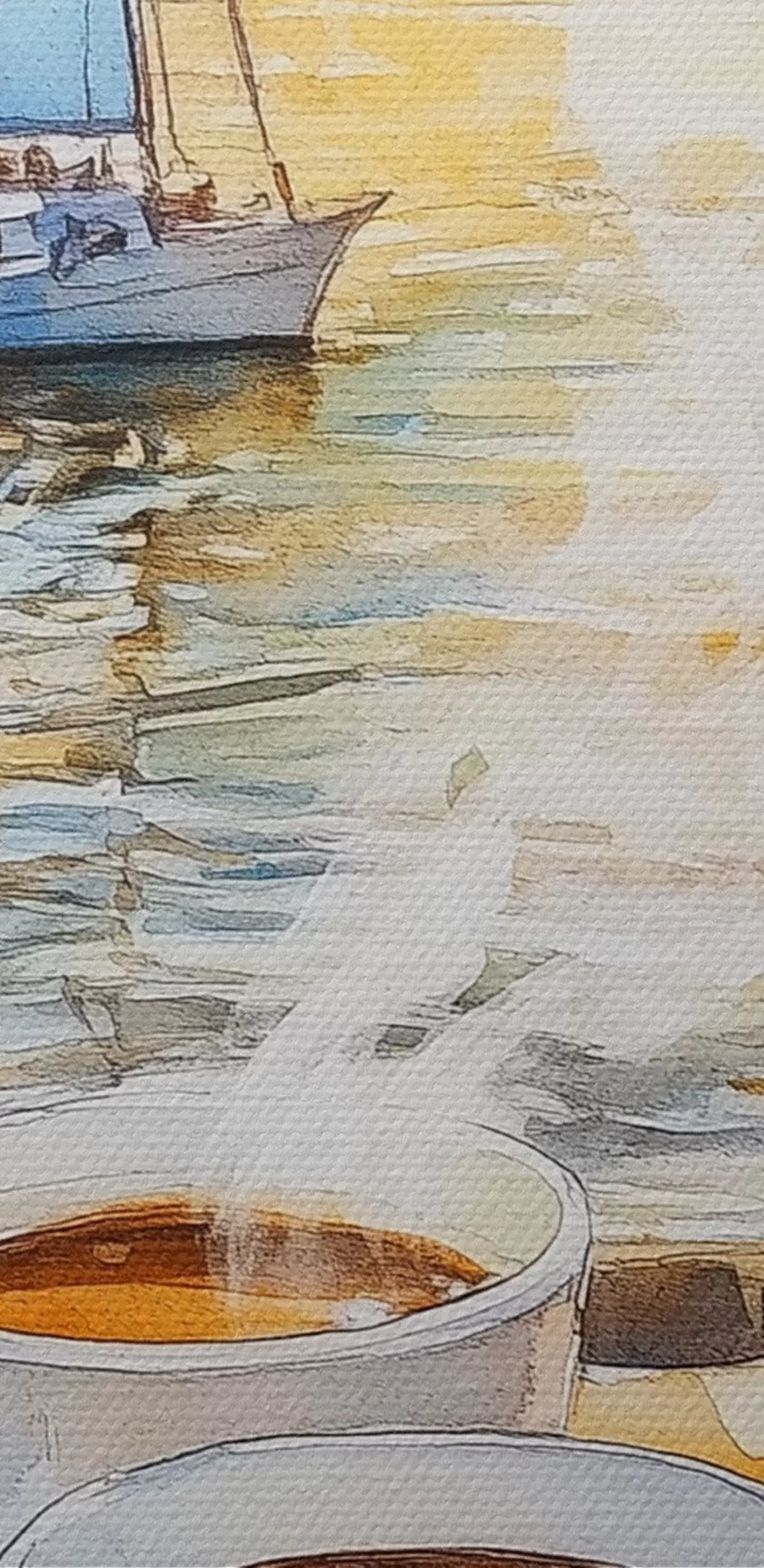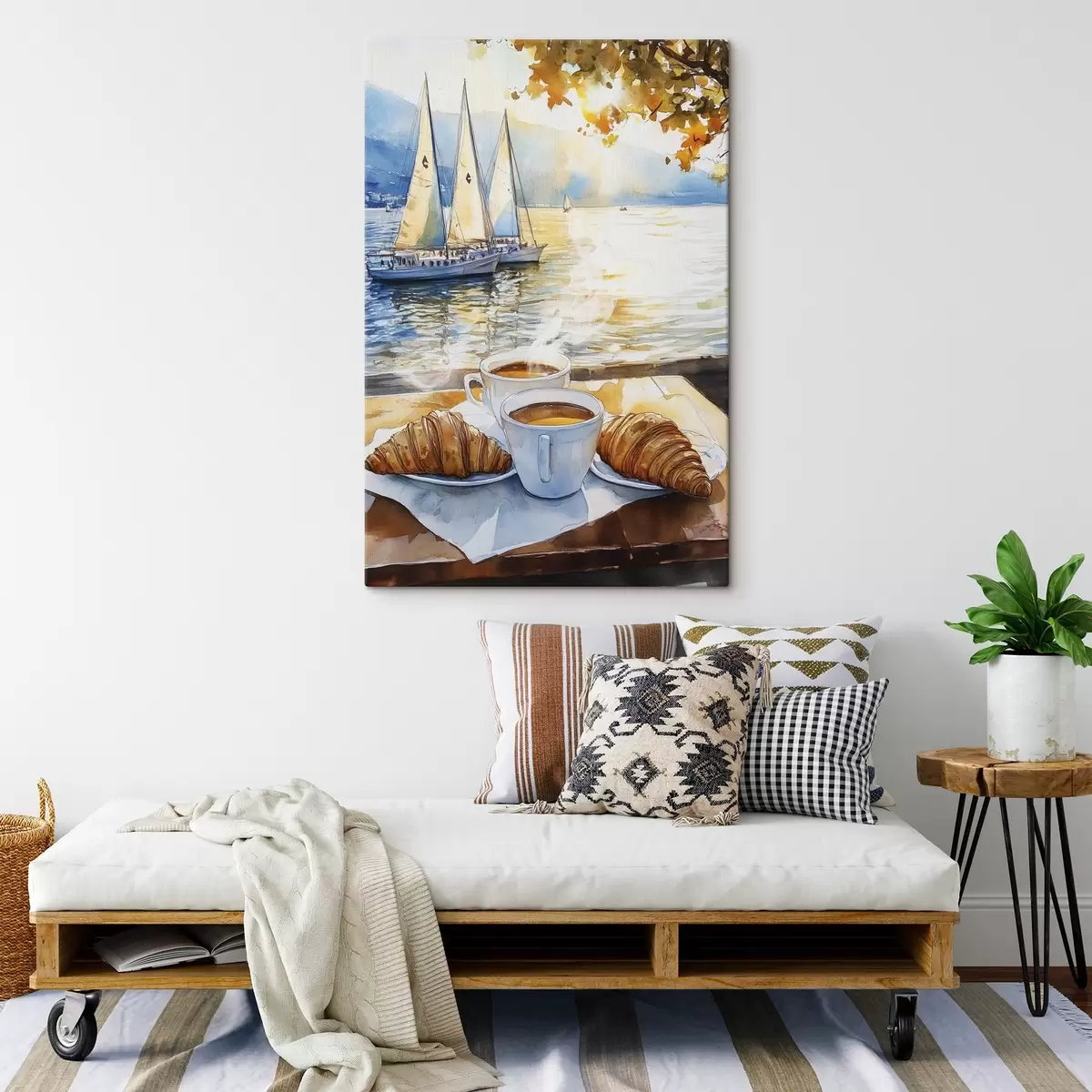 Obraz Filiżanki kawy, kolory zachodu słońca, jezioro, żaglówki, natura, podróże s42443