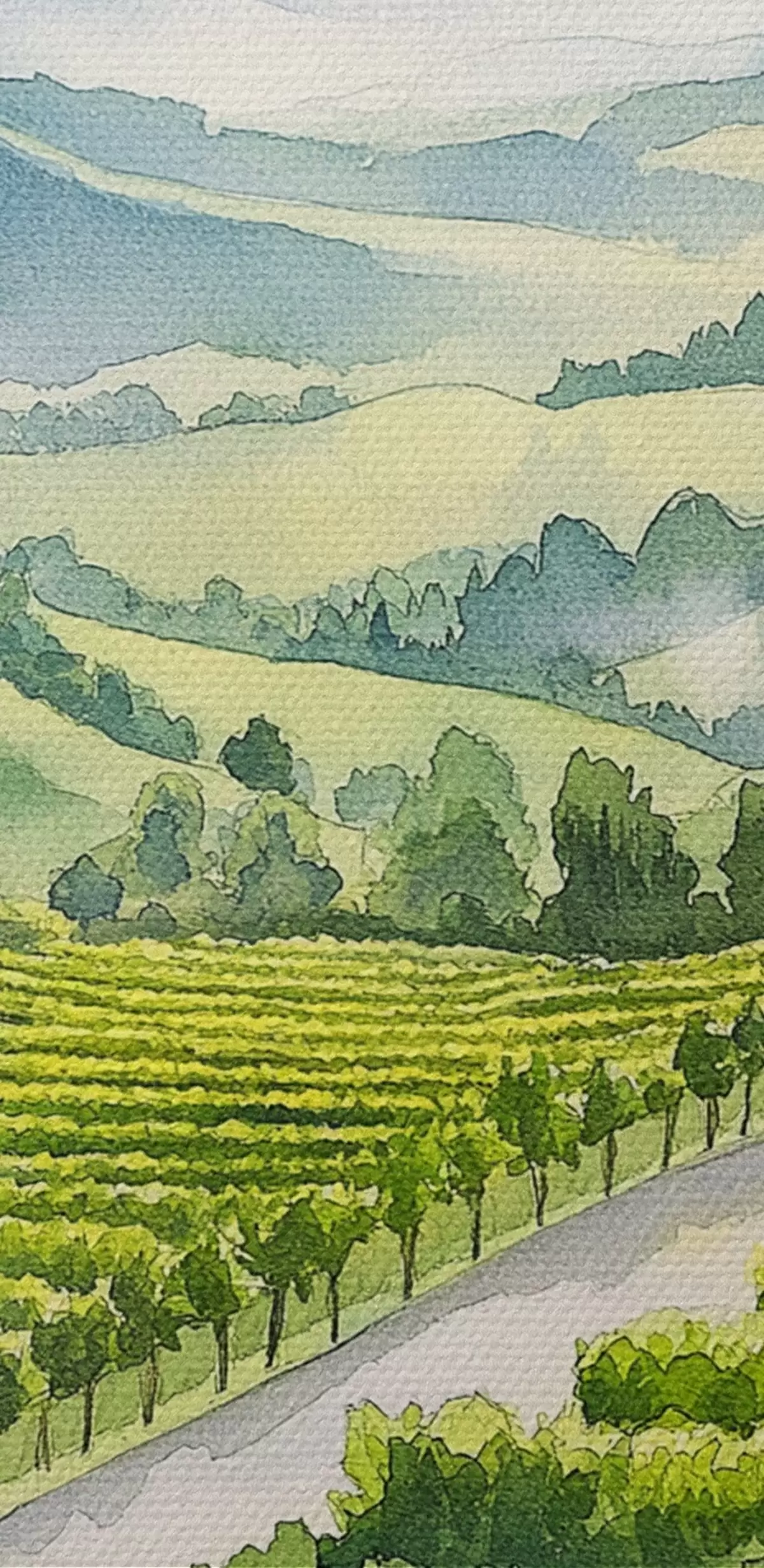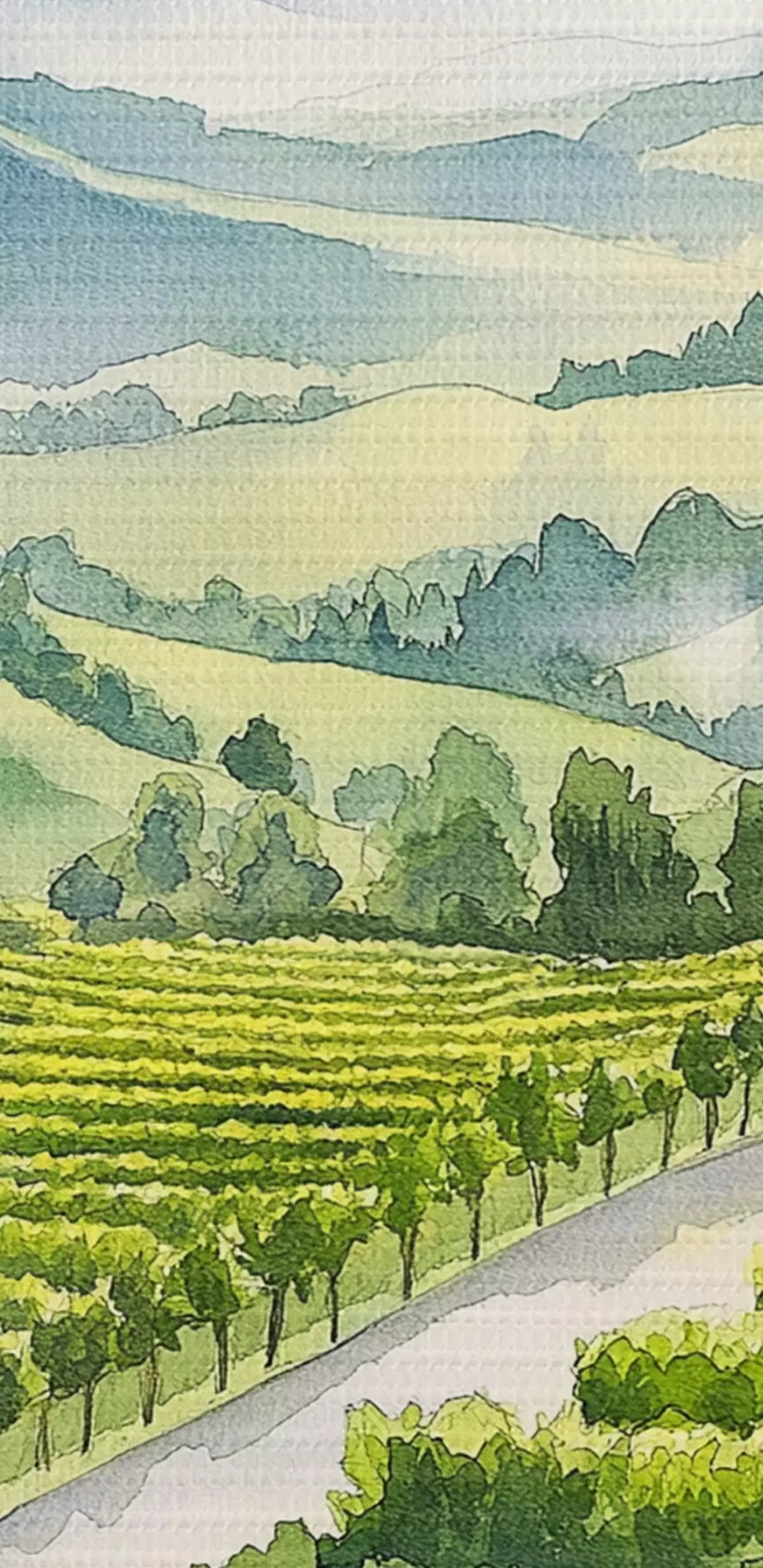 Obraz Podwórka Gpape, pejzaże w stylu akwareli, kieliszki do wina s42444