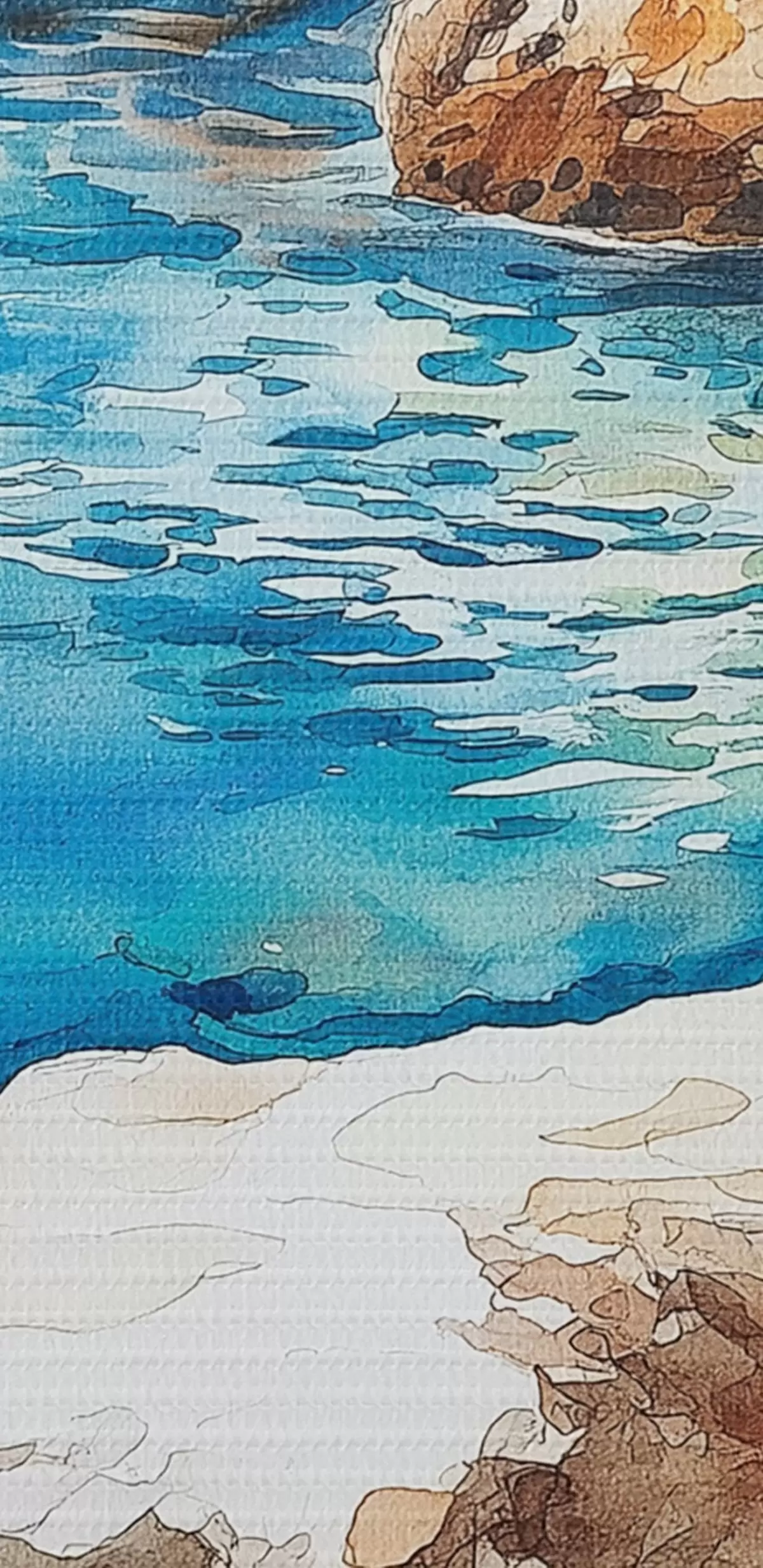 Obraz Akwarela nad morzem z filiżankami kawy, lato s42449