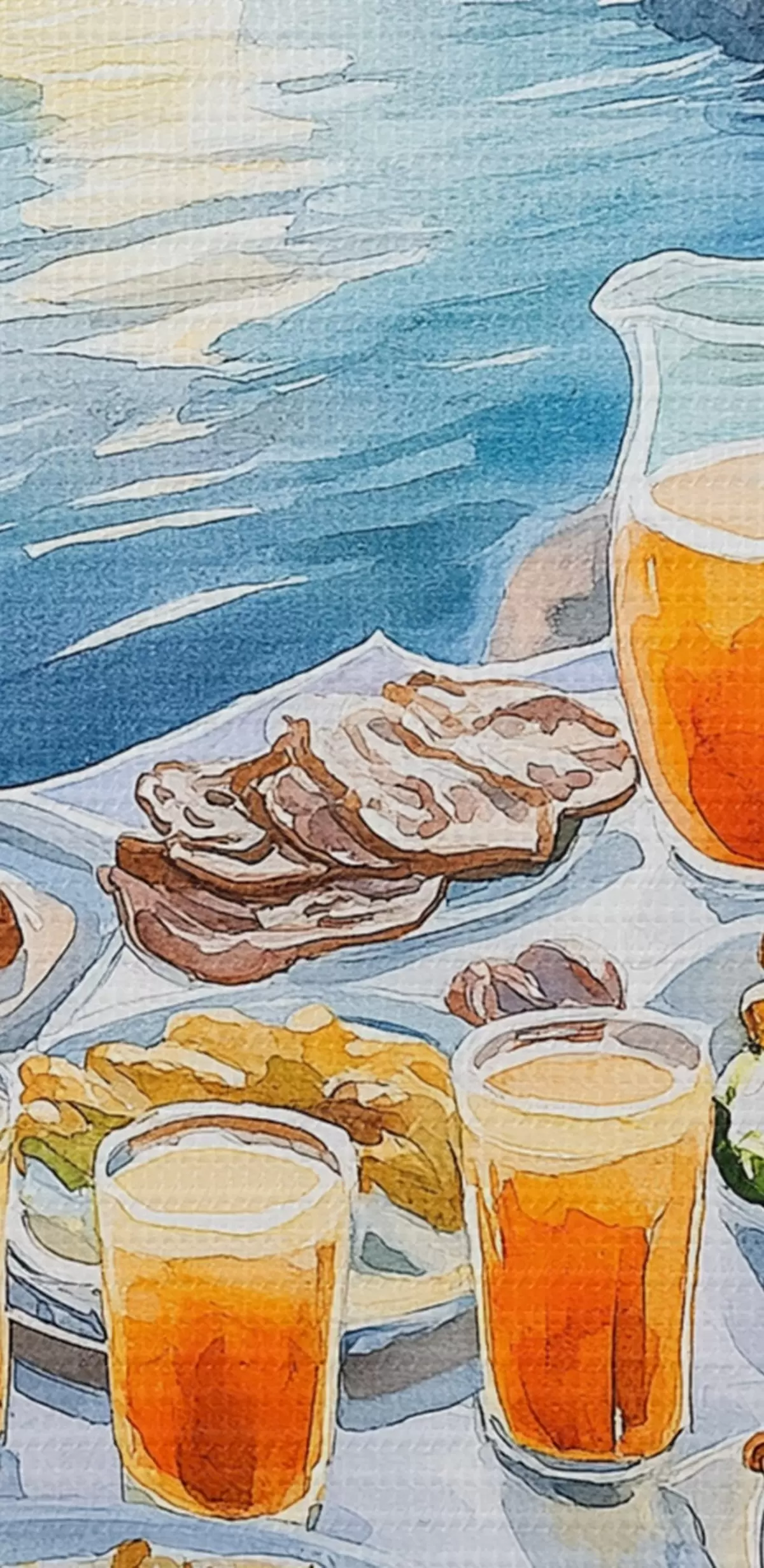 Obraz Romantyczne powołanie w Grecji, styl akwareli, śniadanie, wschód słońca Nr s42453
