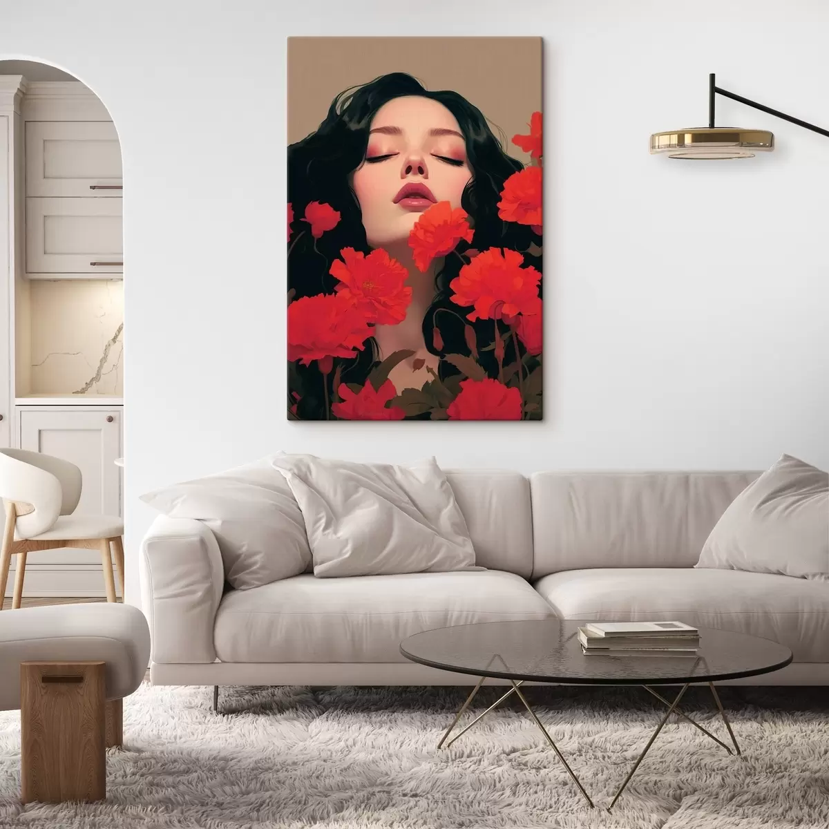 Obraz Portret kobiety wśród czerwonych kwiatów Nr s42478
