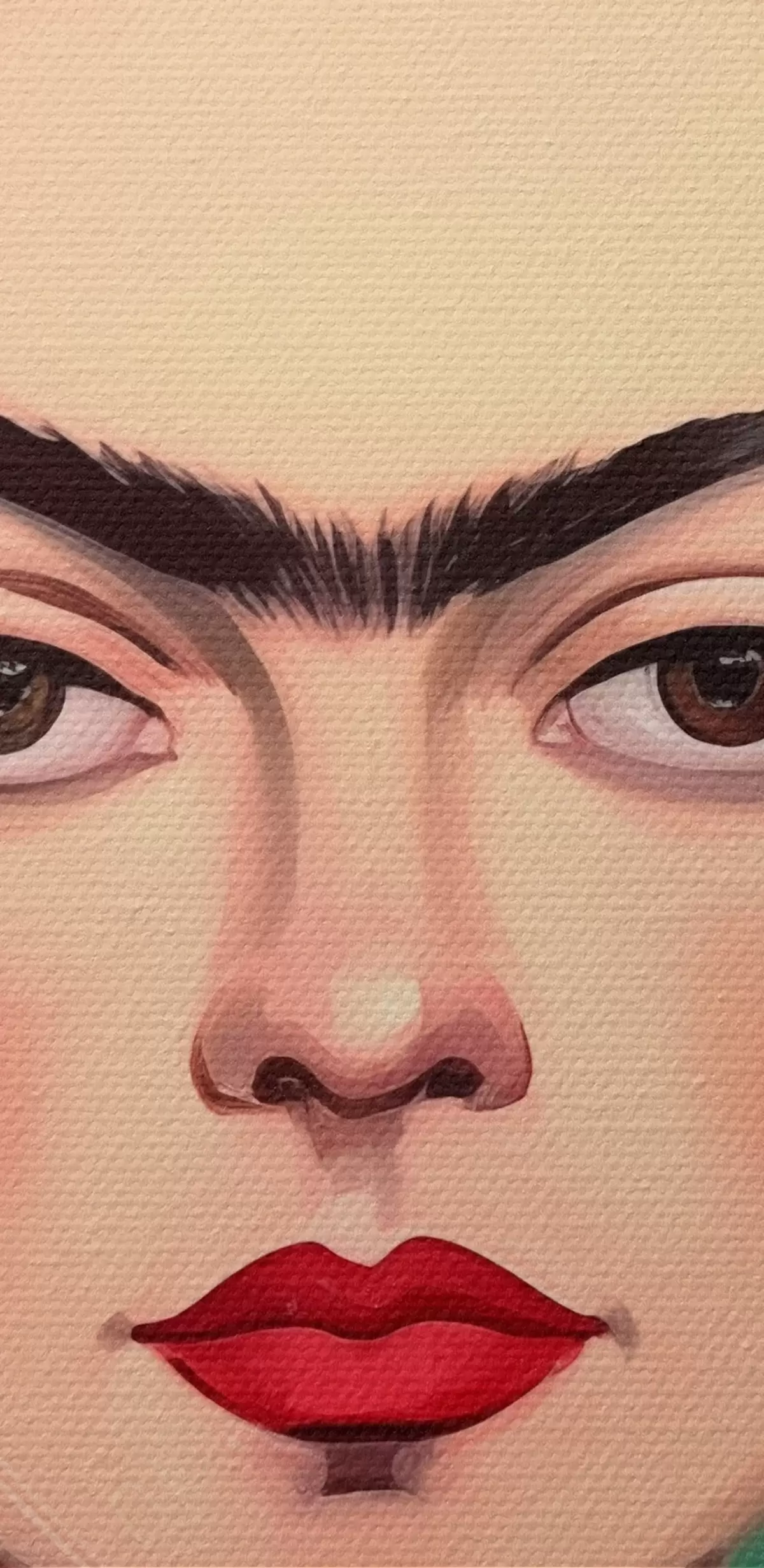 Obraz Portret Fridy z wieńcem kwiatowym na zielonym tle Nr s42485