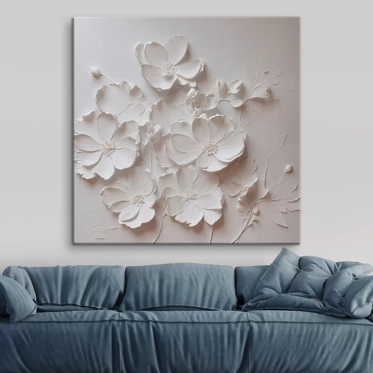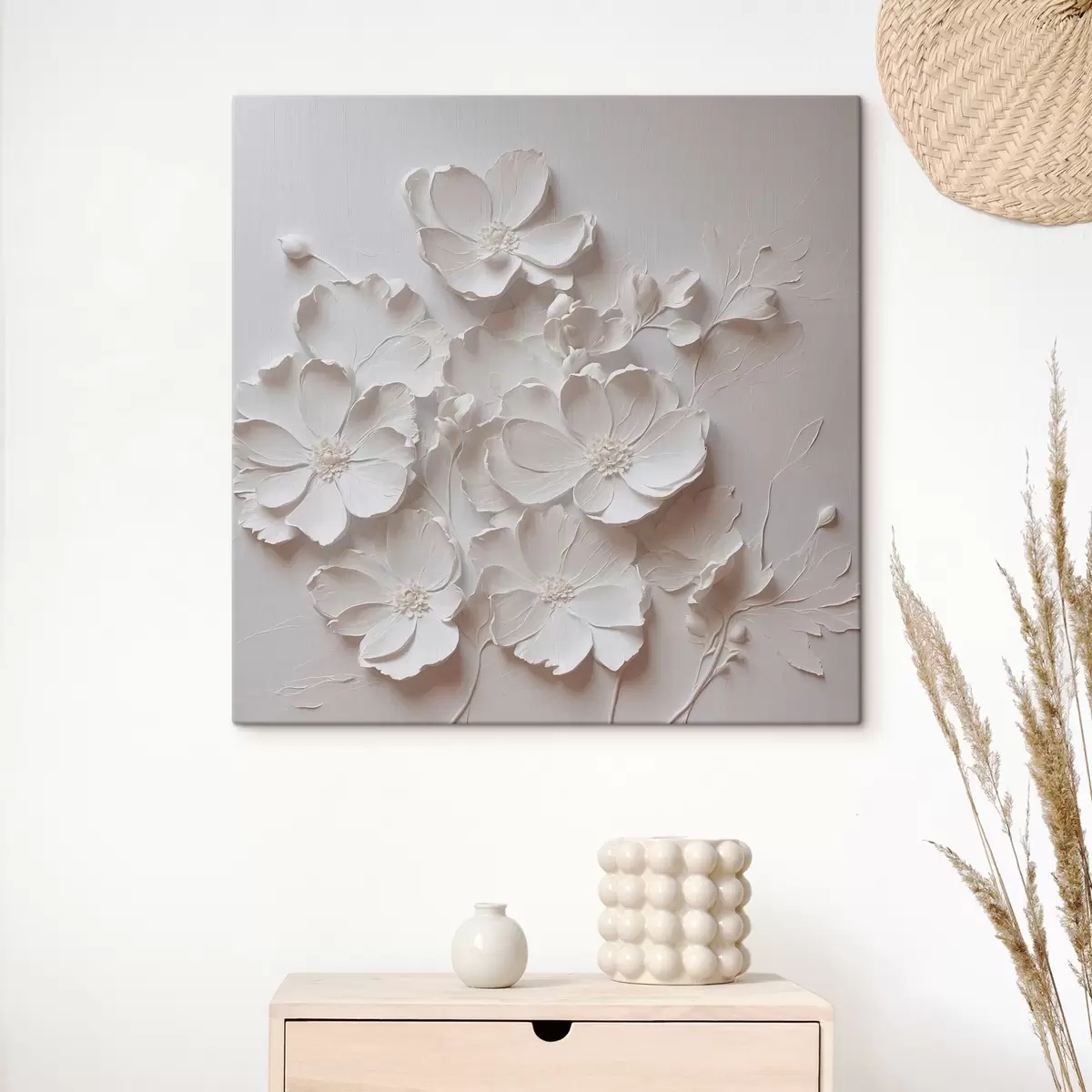 Obraz Białe kwiaty na białym tle w stylu malarstwa olejnego Nr s42516