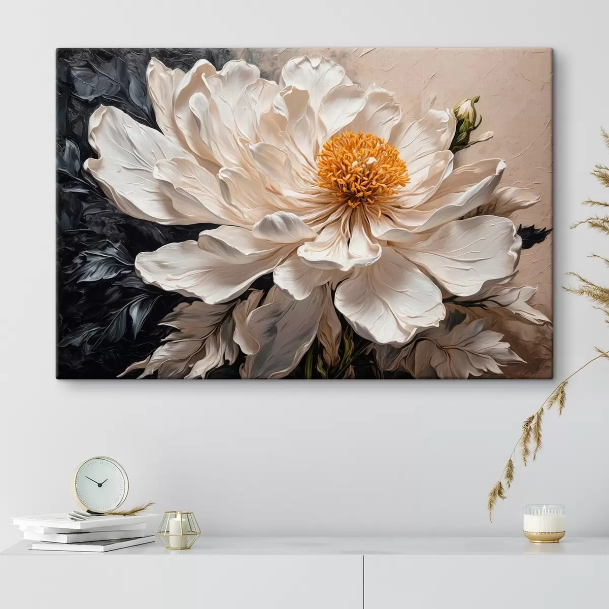 Obraz Biały kwiat na czarnym i beżowym tle Nr s42522