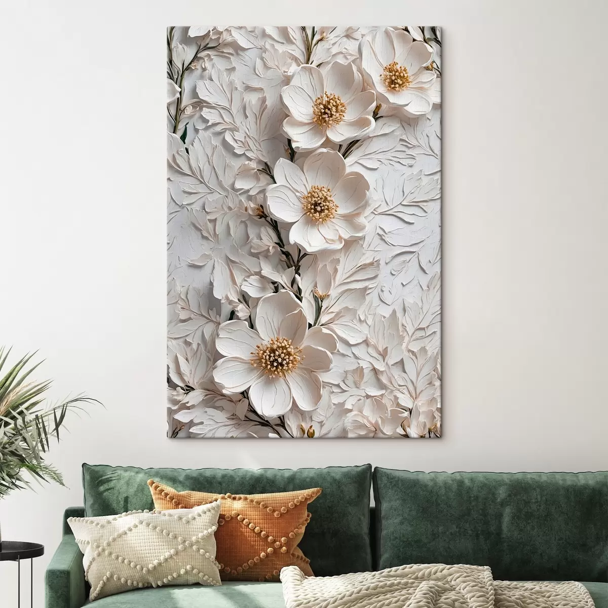 Obraz Białe kwiaty i łodygi w stylu malarstwa olejnego Nr s42546