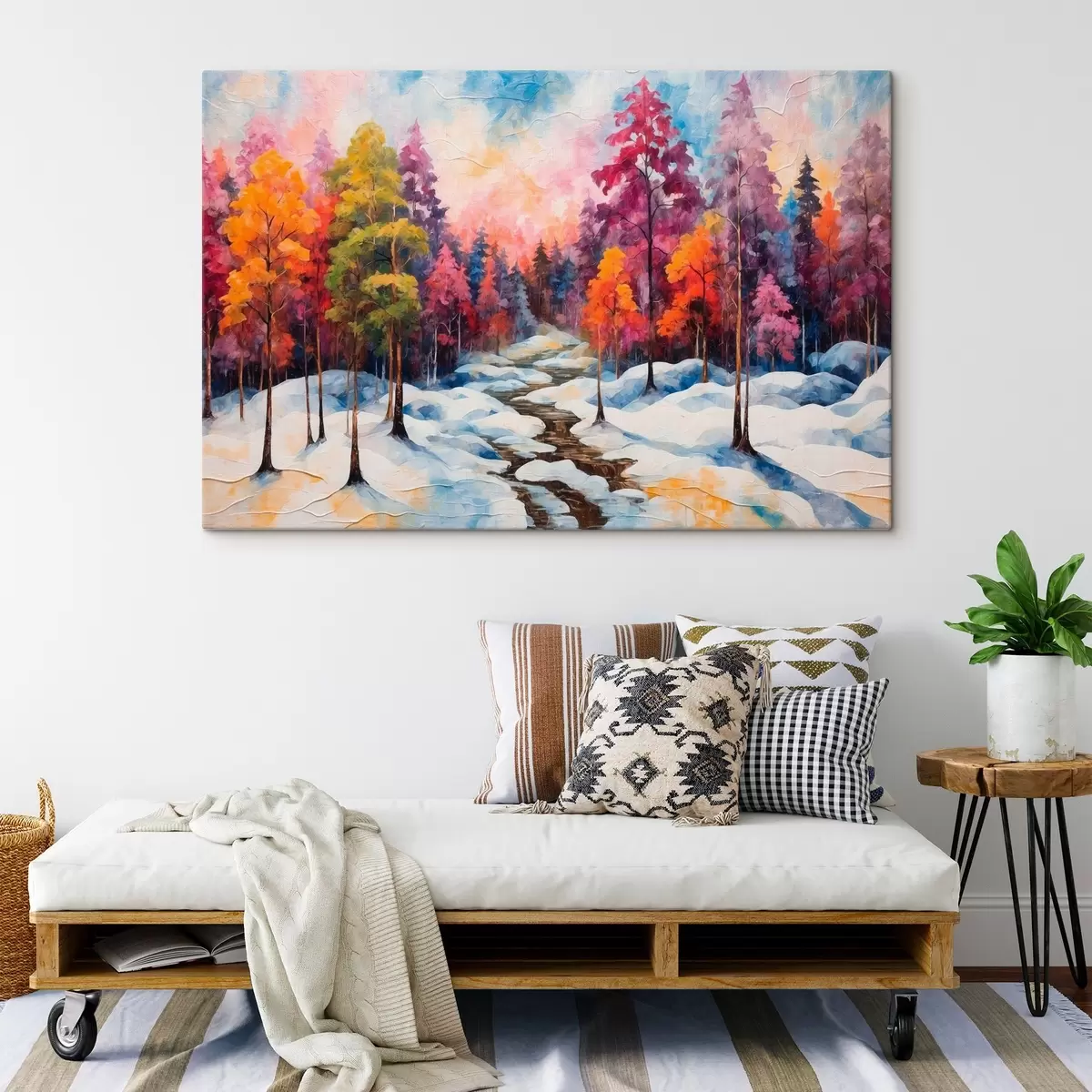 Obraz Las w zimowym stylu malowany akwarelą Nr s42549