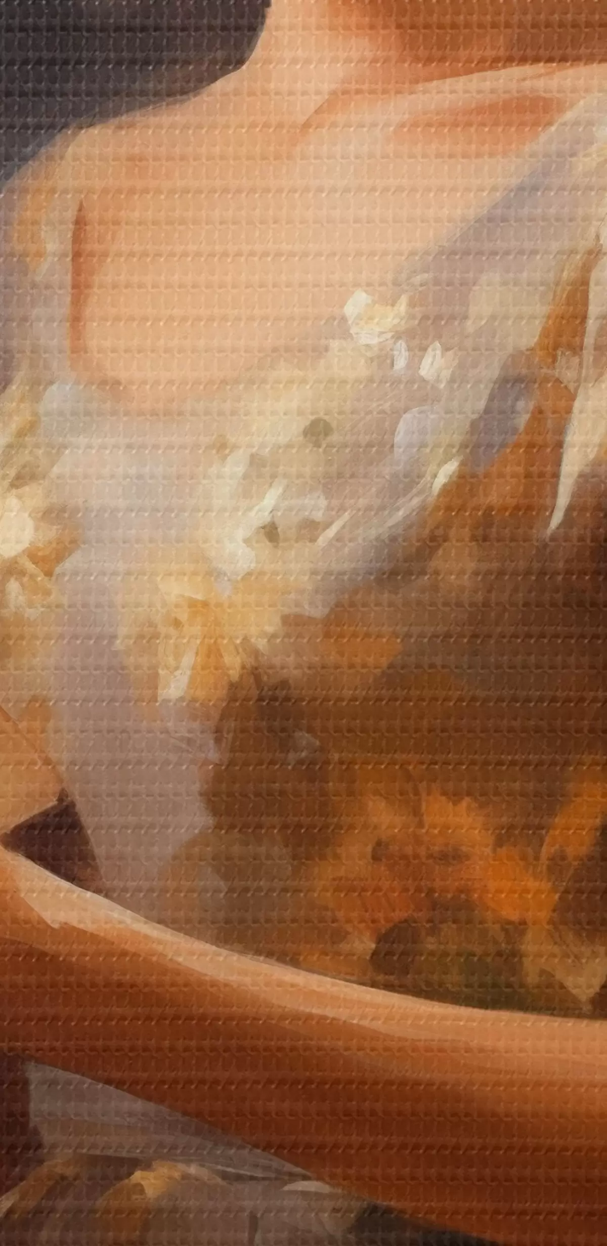 Drobny splot nici na tym płótnie przypomina powierzchnię profesjonalnych płócien artystycznych.
