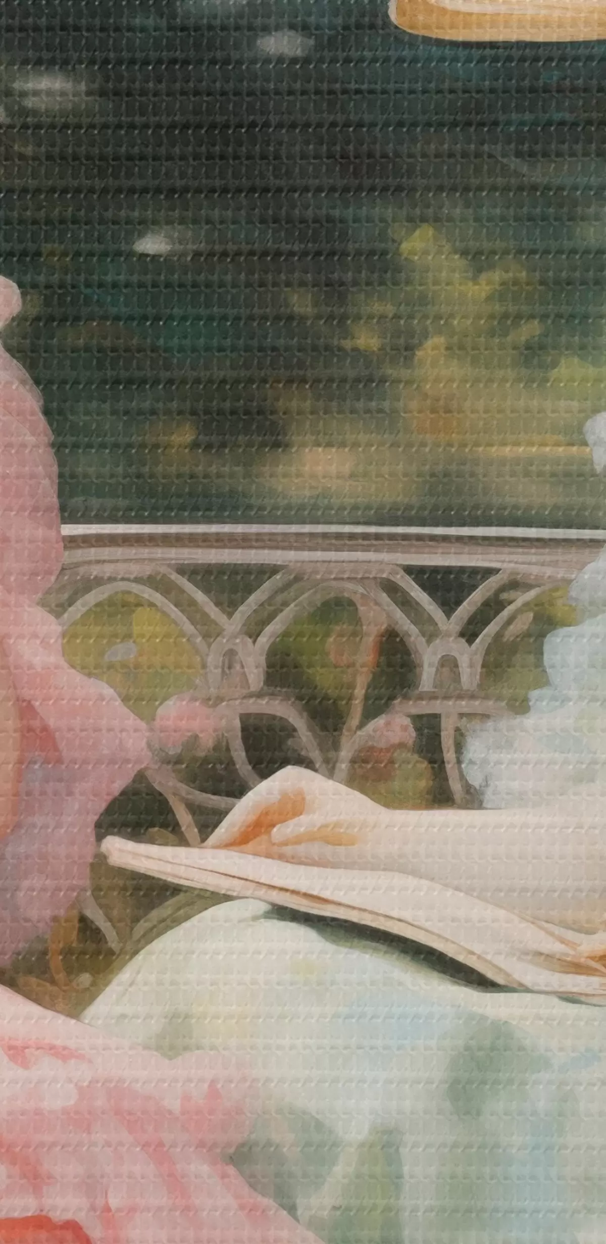 Drobny splot nici na tym płótnie przypomina powierzchnię profesjonalnych płócien artystycznych.