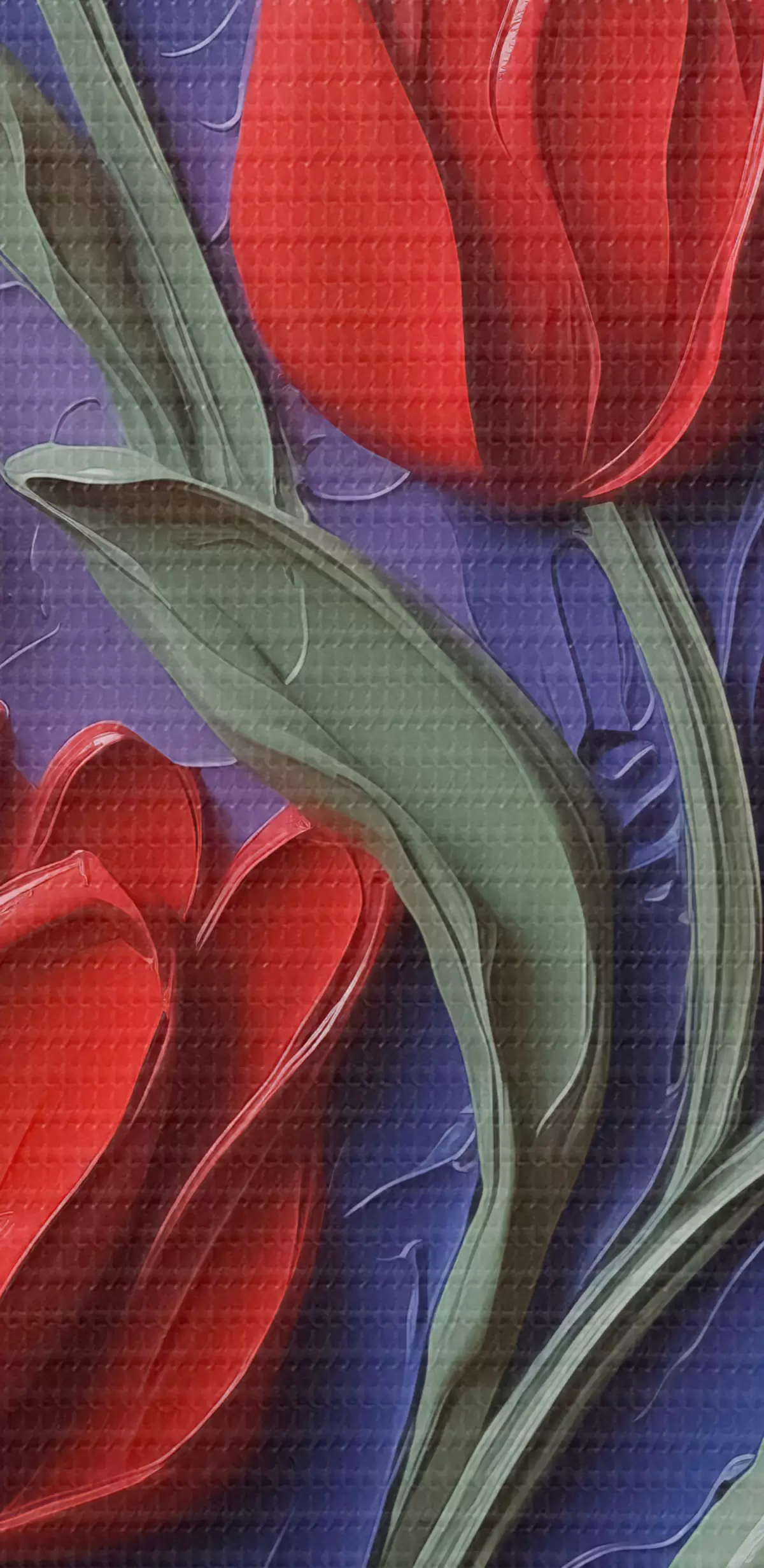 Obraz Czerwone tulipany na fioletowej imitacji pociągnięć pędzla Nr s42584