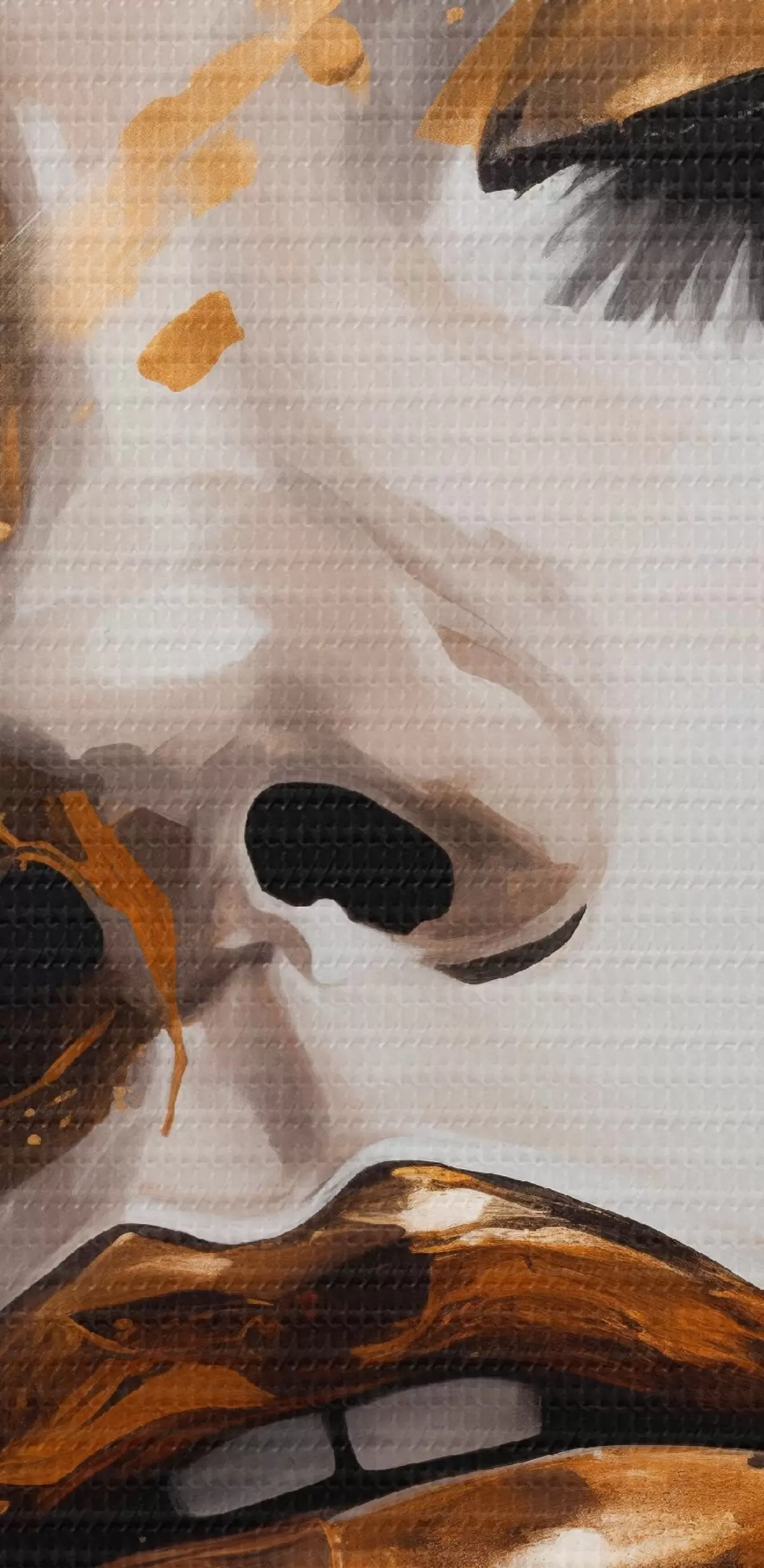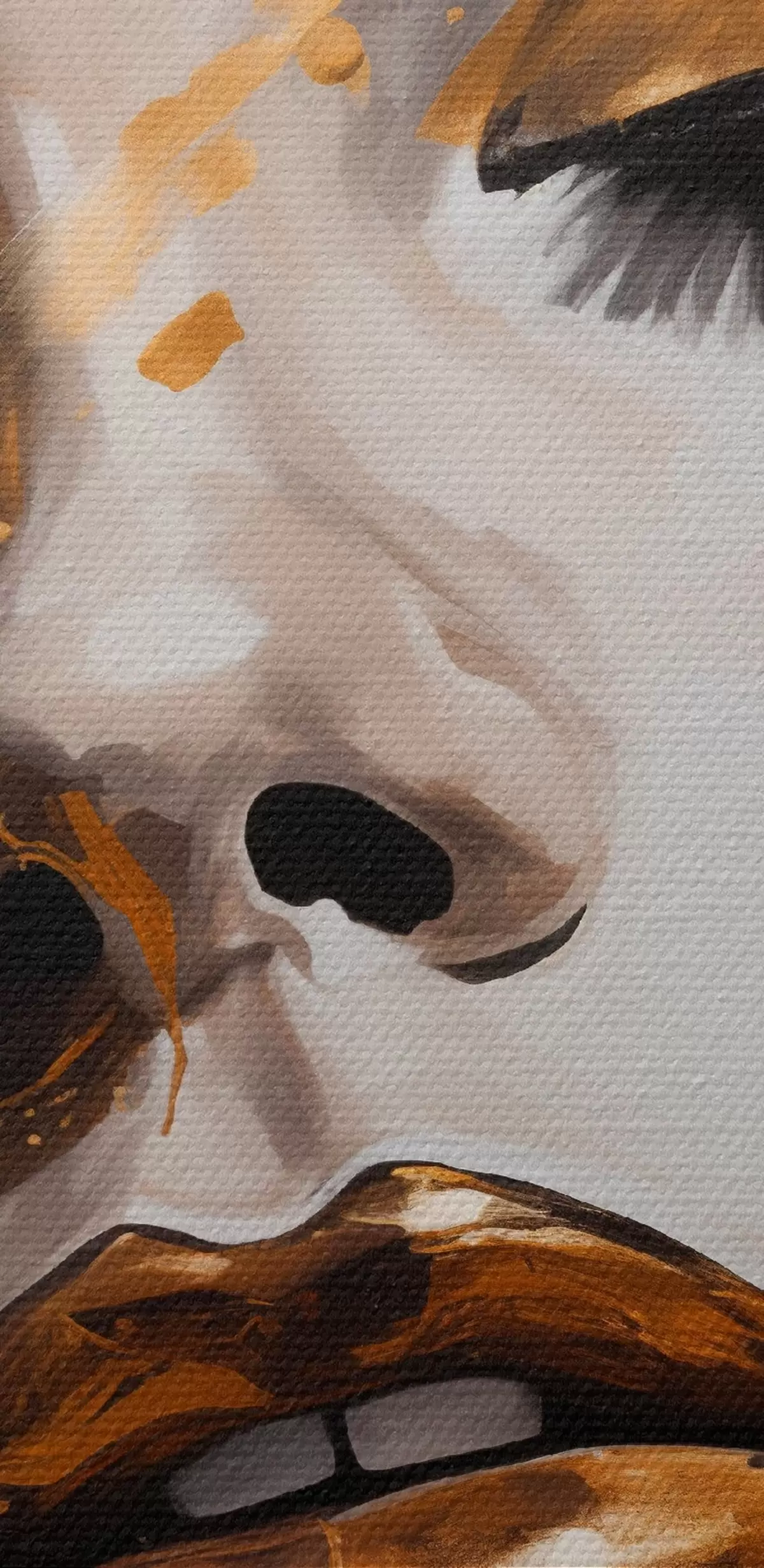 Obraz Abstrakcyjny portret kobiety z bogatymi pociągnięciami pędzla w ciepłych odcieniach, tworzący żywy i dramatyczny obraz. Nr s42619