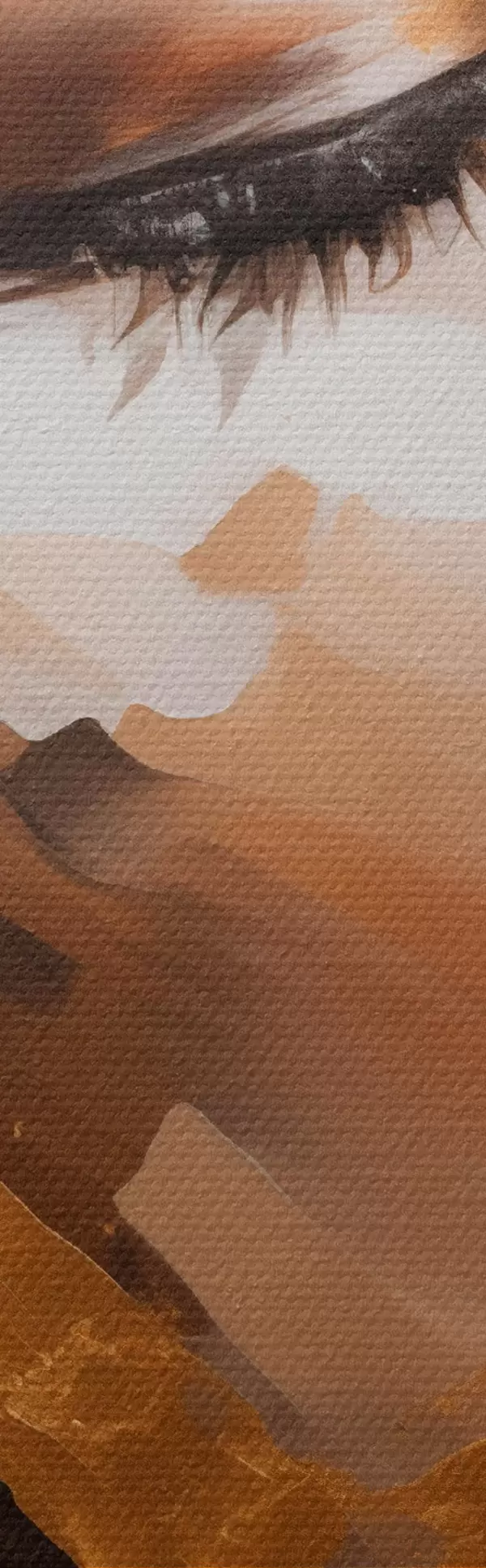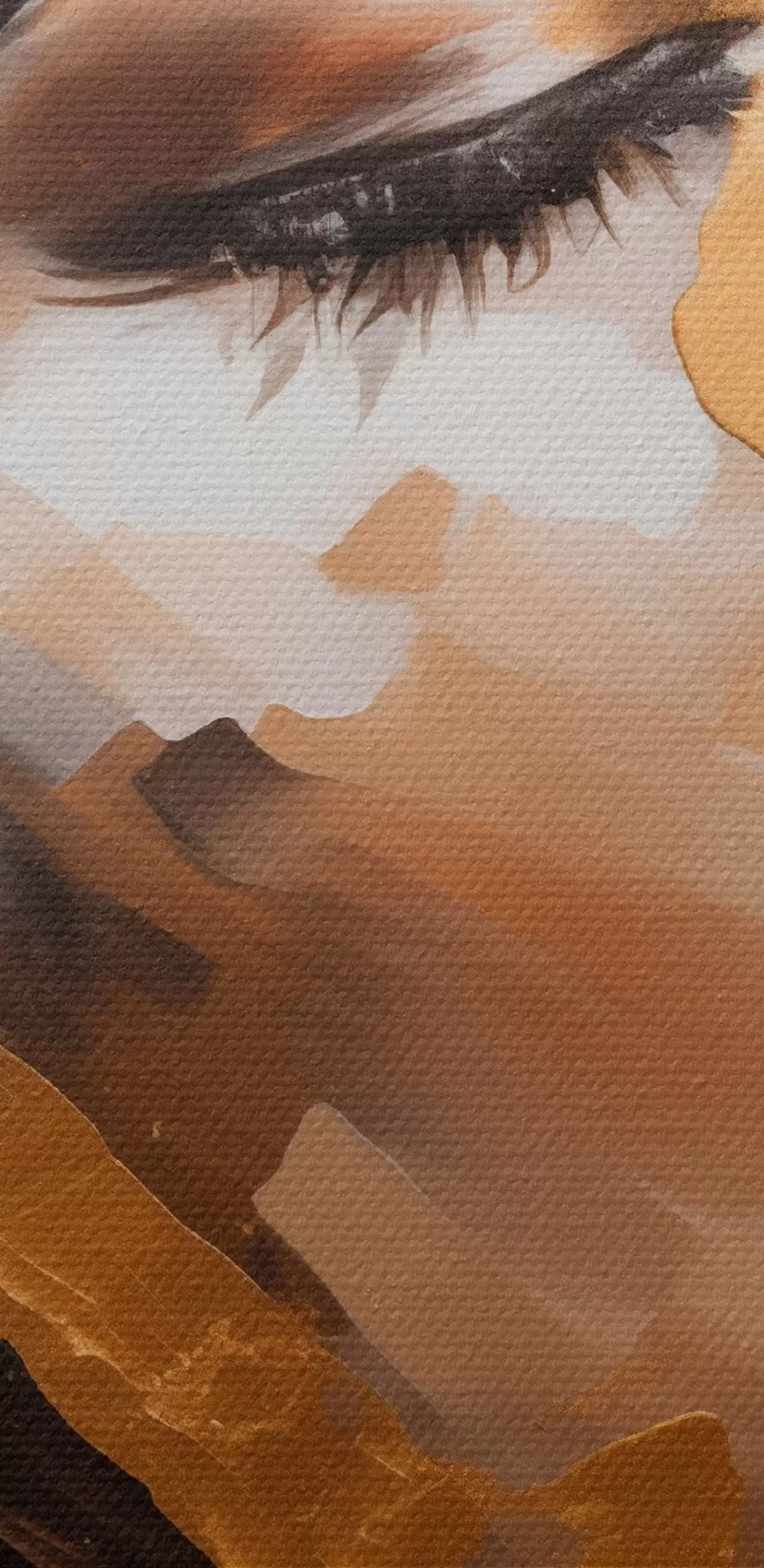 Obraz Abstrakcyjny portret kobiety o łagodnym wyrazie twarzy, utrzymany w ciepłej tonacji z dynamicznymi pociągnięciami pędzla, które dodają głębi i emocji. Nr s42627