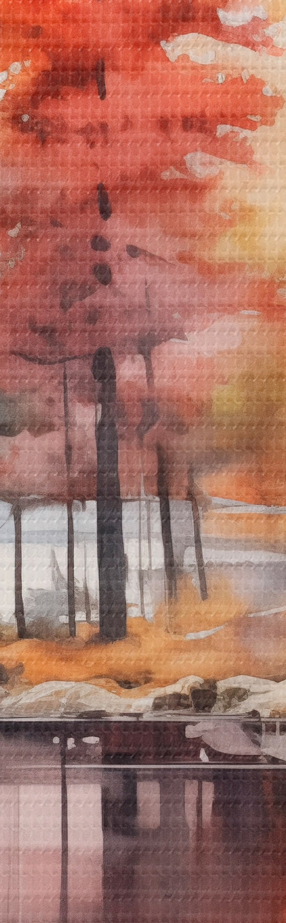 Obraz Akwarelowy krajobraz z jeziorem otoczonym drzewami w żywych jesiennych kolorach Nr s42727