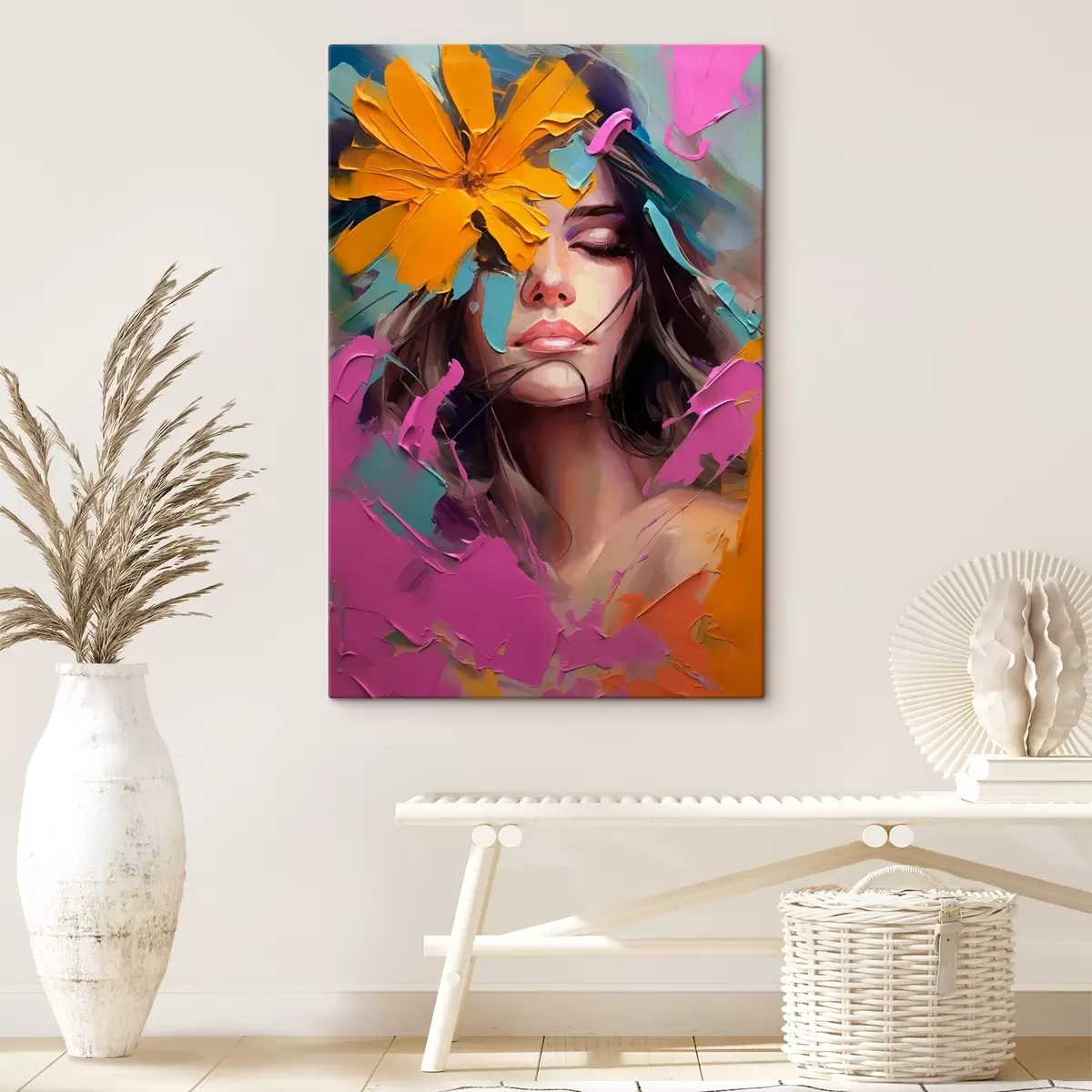 Obraz Abstrakcyjny portret dziewczyny z kwiatem Nr s42748