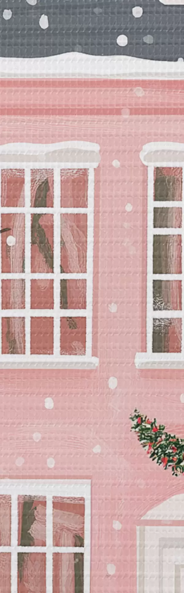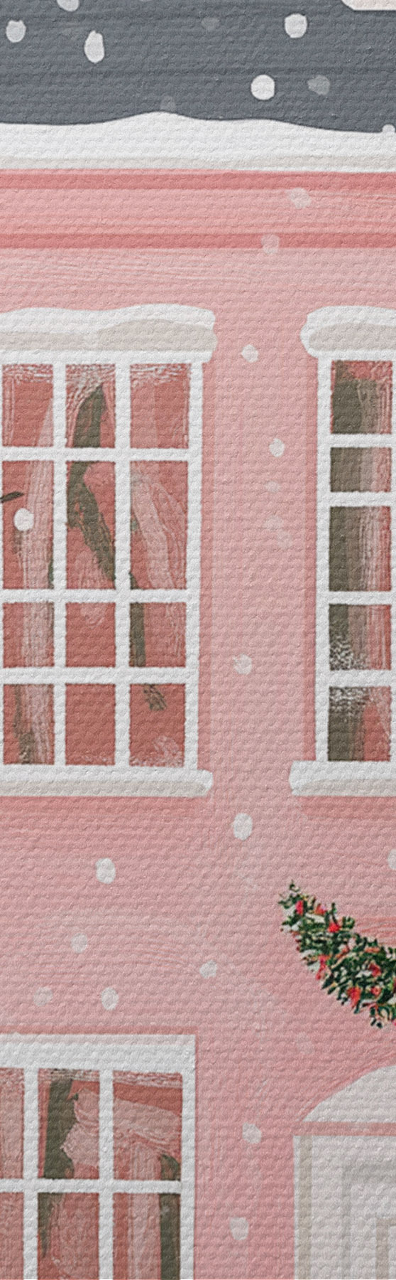 Obraz Urocze różowe domy, sosny, zimowe krajobrazy  s42791