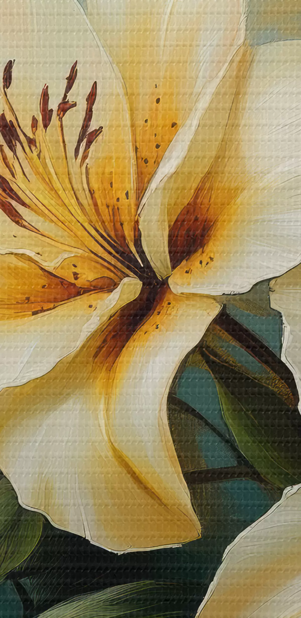 Drobny splot nici na tym płótnie przypomina powierzchnię profesjonalnych płócien artystycznych.