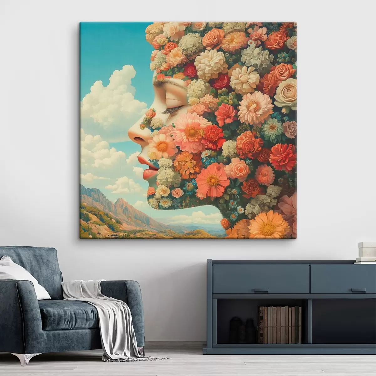 Obraz Twarz z profilu w kwiatach s42861