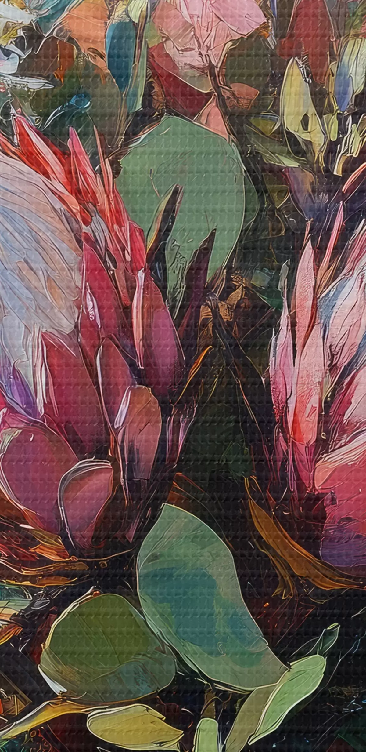 Do zamówienia dostępne są trzy rodzaje materiału: Economic Canvas - gęsty i trwały materiał do druku cyfrowego, identyczny z płótnem malarskim, wodoodporna powierzchnia, realistyczne odwzorowanie szczegółów, materiał średnioziarnisty. Premium Canvas - tekstura przypominająca płótno malarskie (przeplatane drobne nitki). Miękka, szczegółowa reprodukcja obrazu na matowej powierzchni. Eco-Premium - wysokiej jakości tkanina w 100% bawełniana. Dzięki naturalnym włóknom bawełnianym materiał jest trwały i odporny na zużycie. Doskonałe odwzorowanie kolorów i szczegółów.