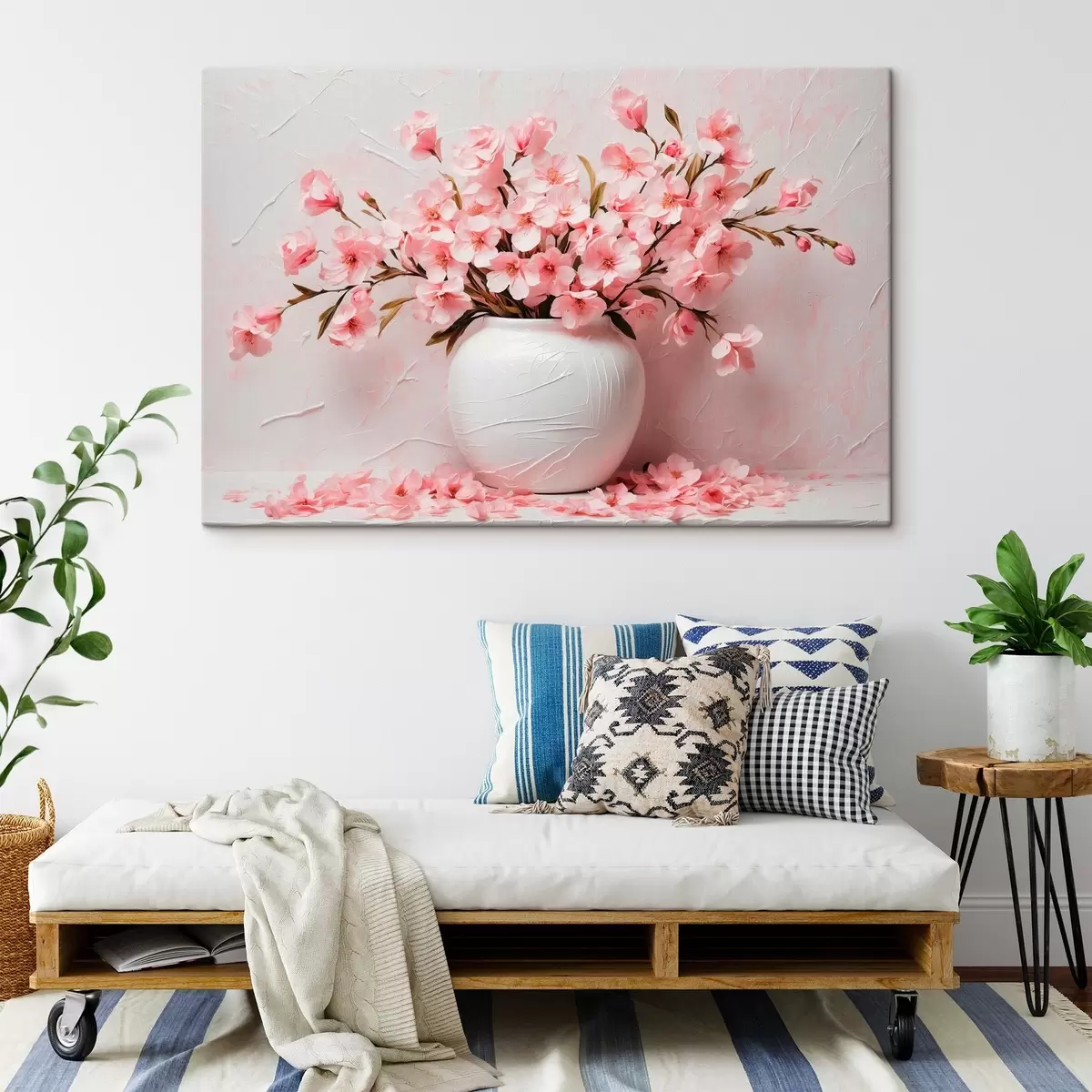 Obraz Różowe kwiaty w białym wazonie Nr s42915