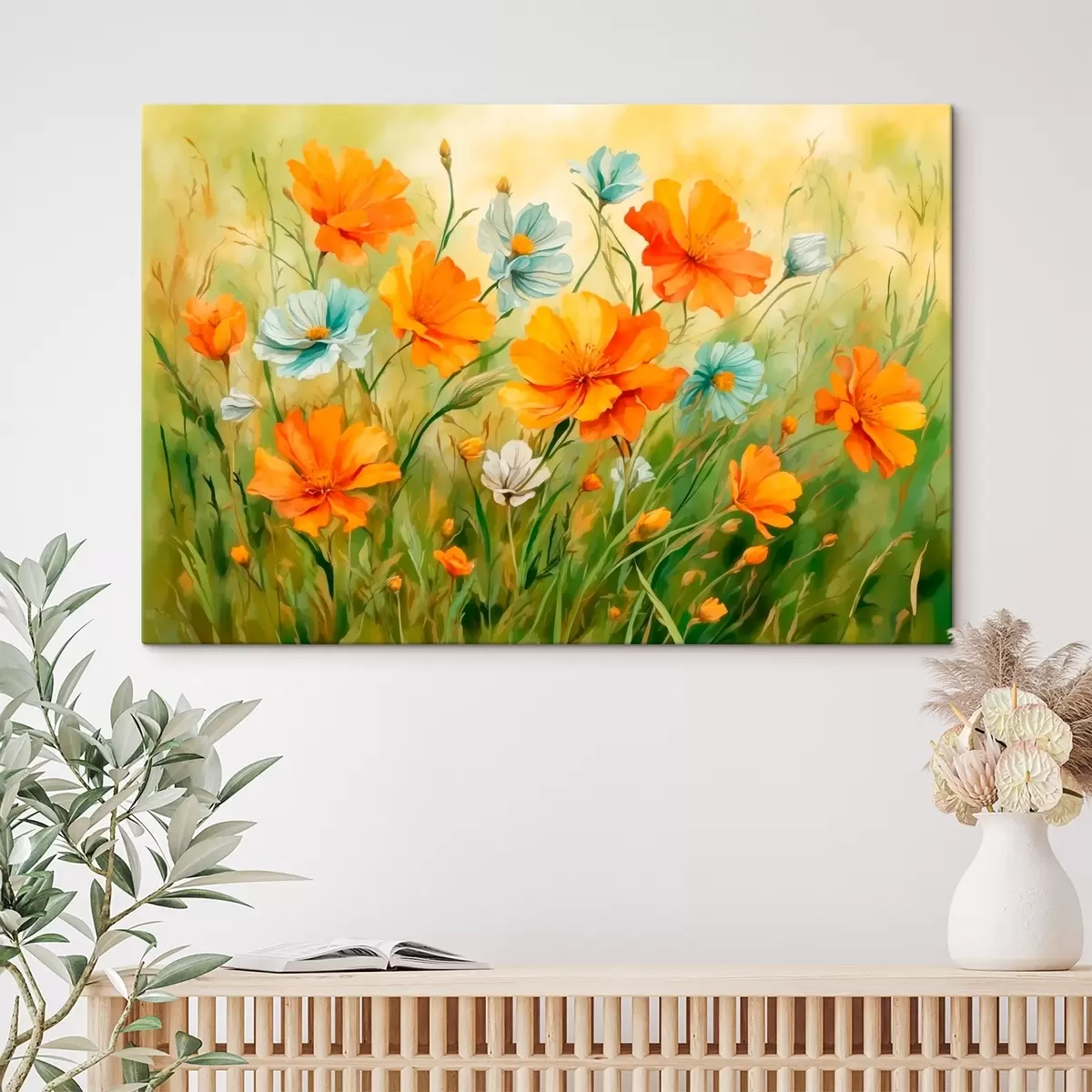 Obraz Pole kwiatów i roślin w stylu malarstwa akwarelowego s42916