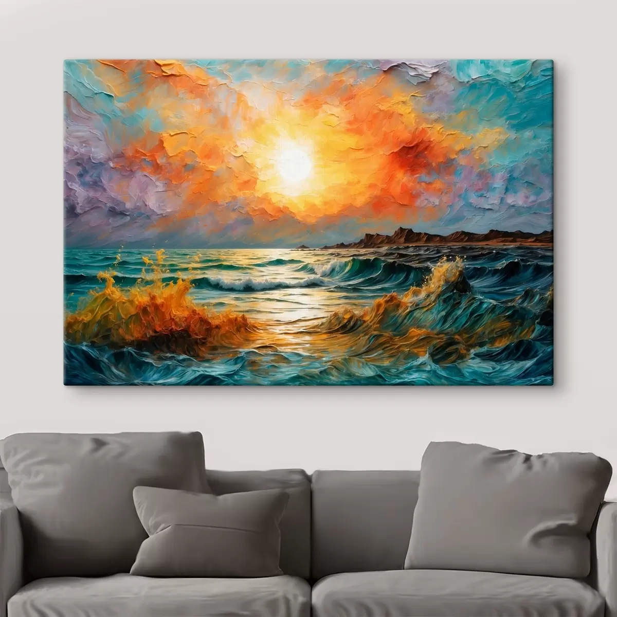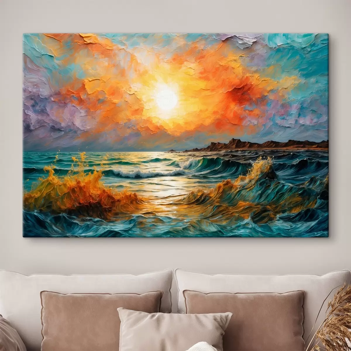 Obraz Burzliwe morze i słońce w stylu malarstwa olejnego Nr s42920