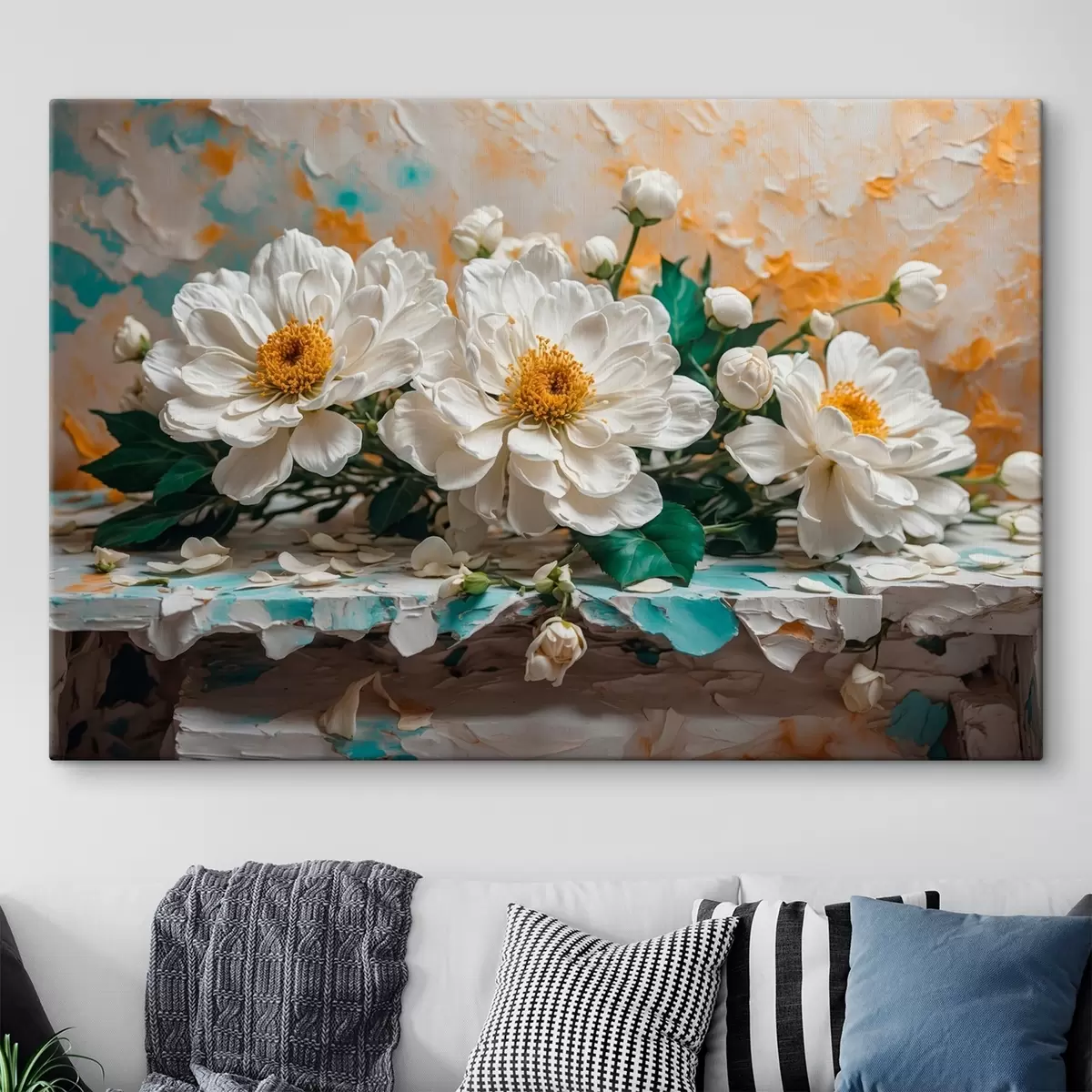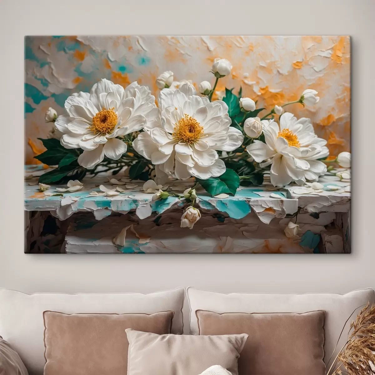 Obraz Białe kwiaty na stole na abstrakcyjnym tle Nr s42924