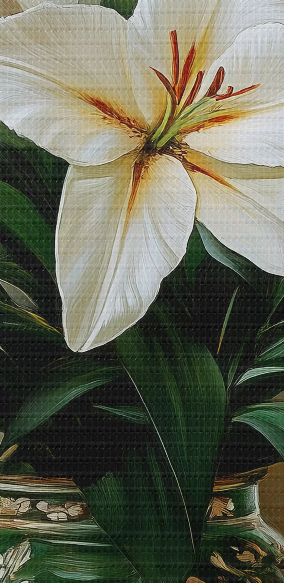 Drobny splot nici na tym płótnie przypomina powierzchnię profesjonalnych płócien artystycznych.