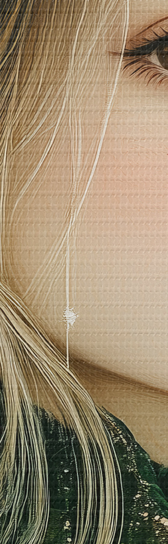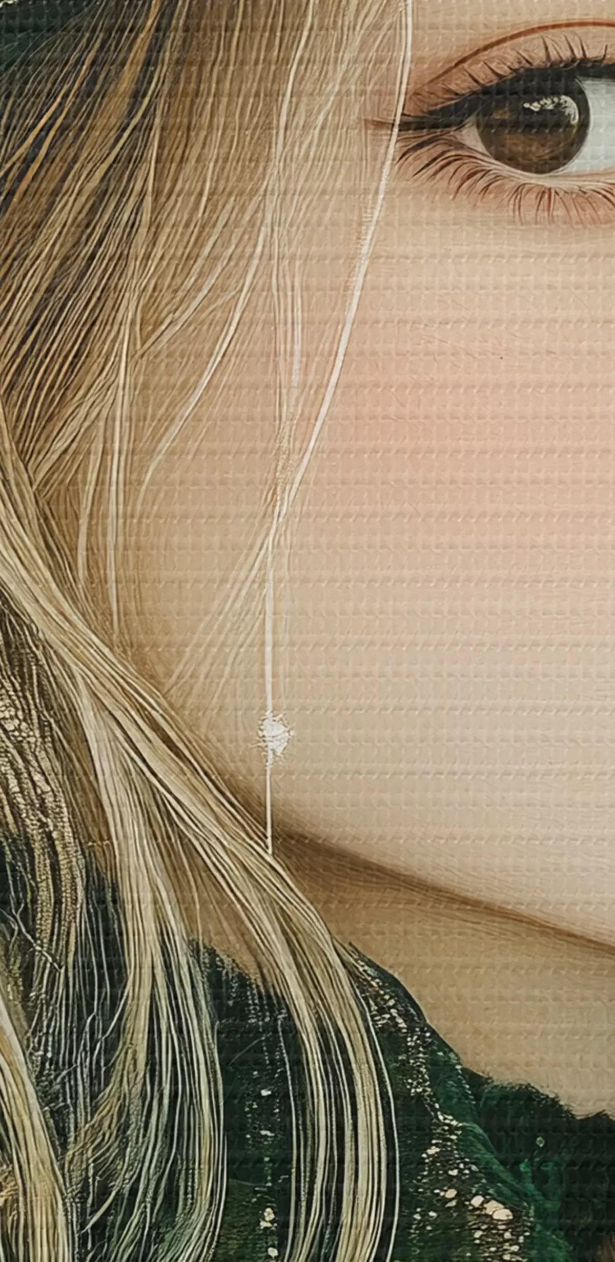 Drobny splot nici na tym płótnie przypomina powierzchnię profesjonalnych płócien artystycznych.