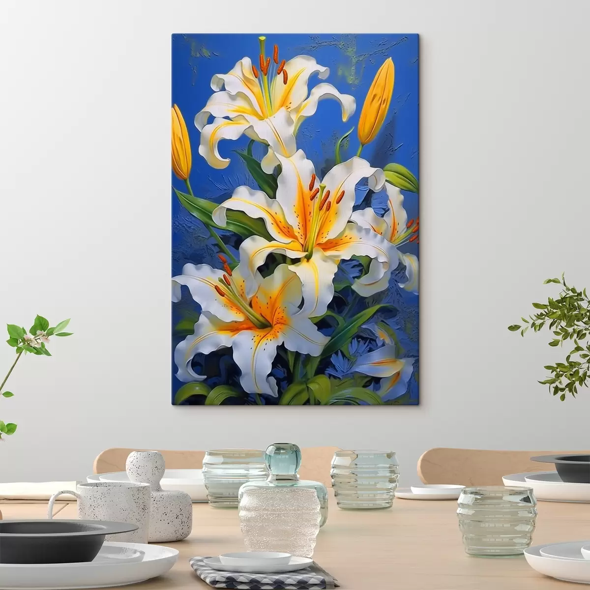 Obraz Białe lilie na niebieskim tle Nr s43018