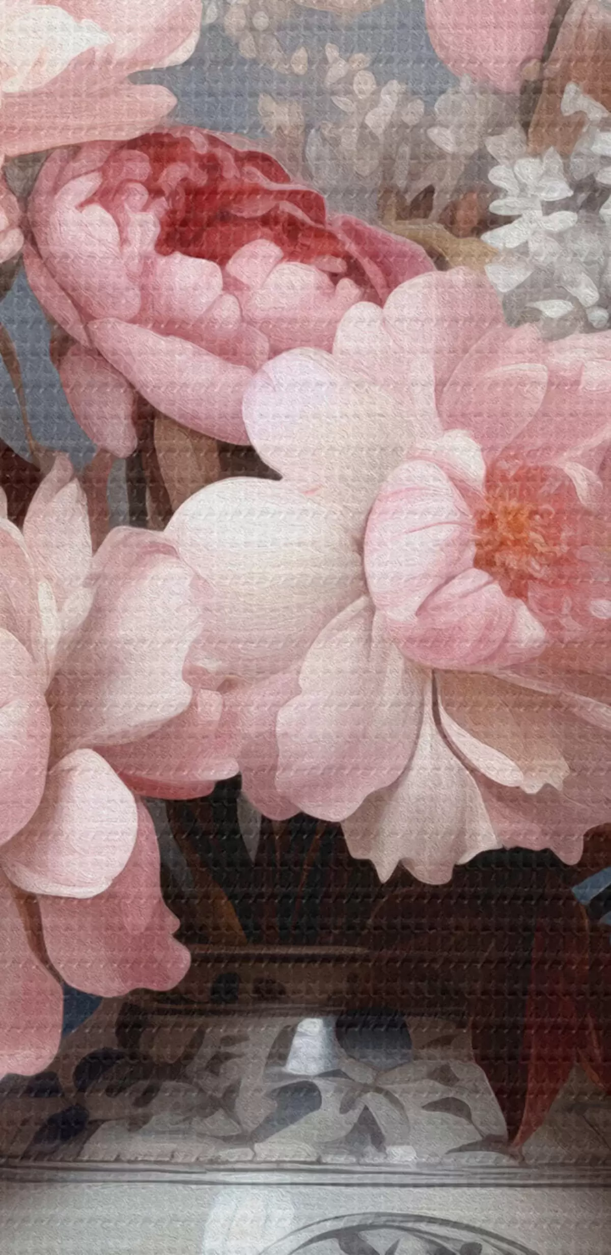 Drobny splot nici na tym płótnie przypomina powierzchnię profesjonalnych płócien artystycznych.
