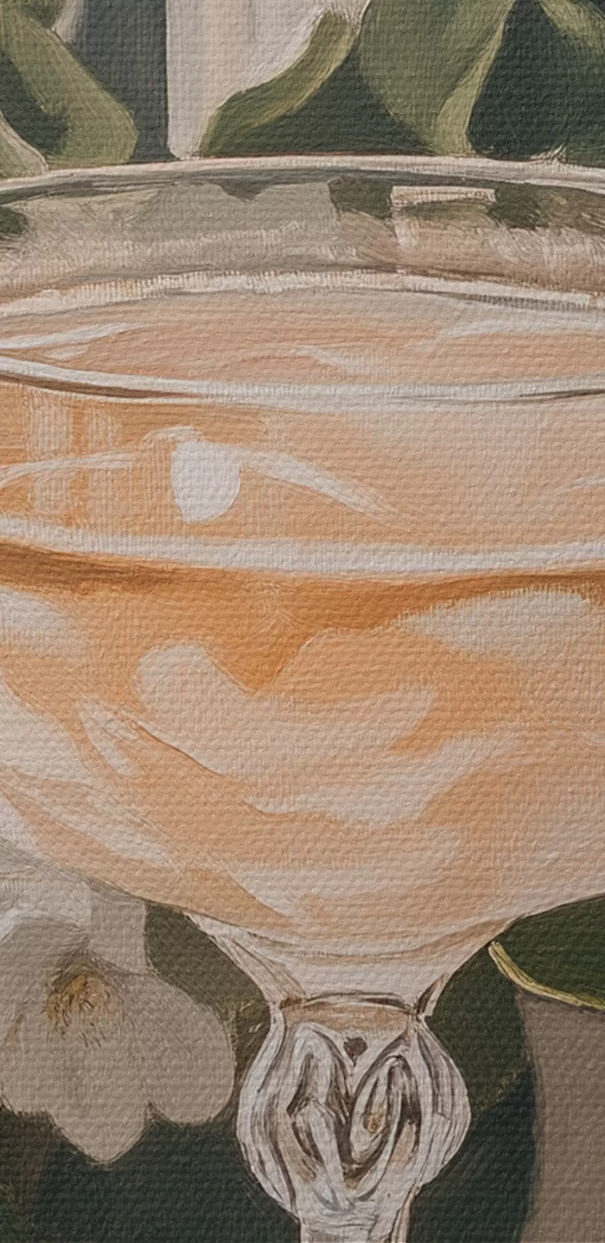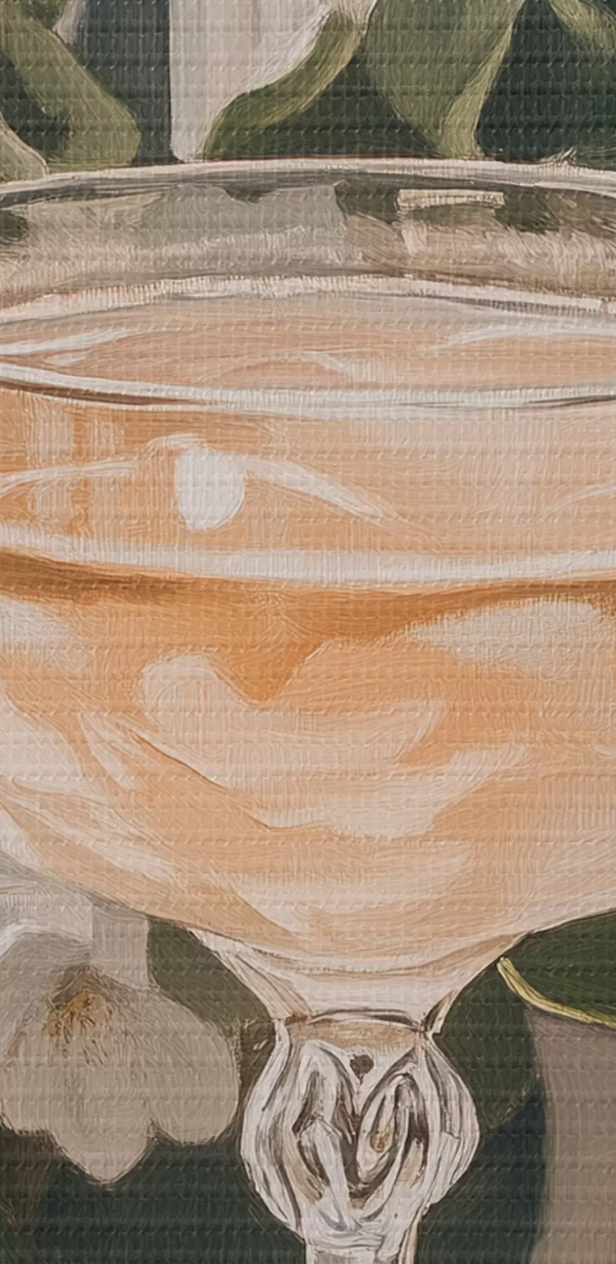 Obraz Kieliszek szampana, styl vintage, akwarela, białe kwiaty Nr s43051