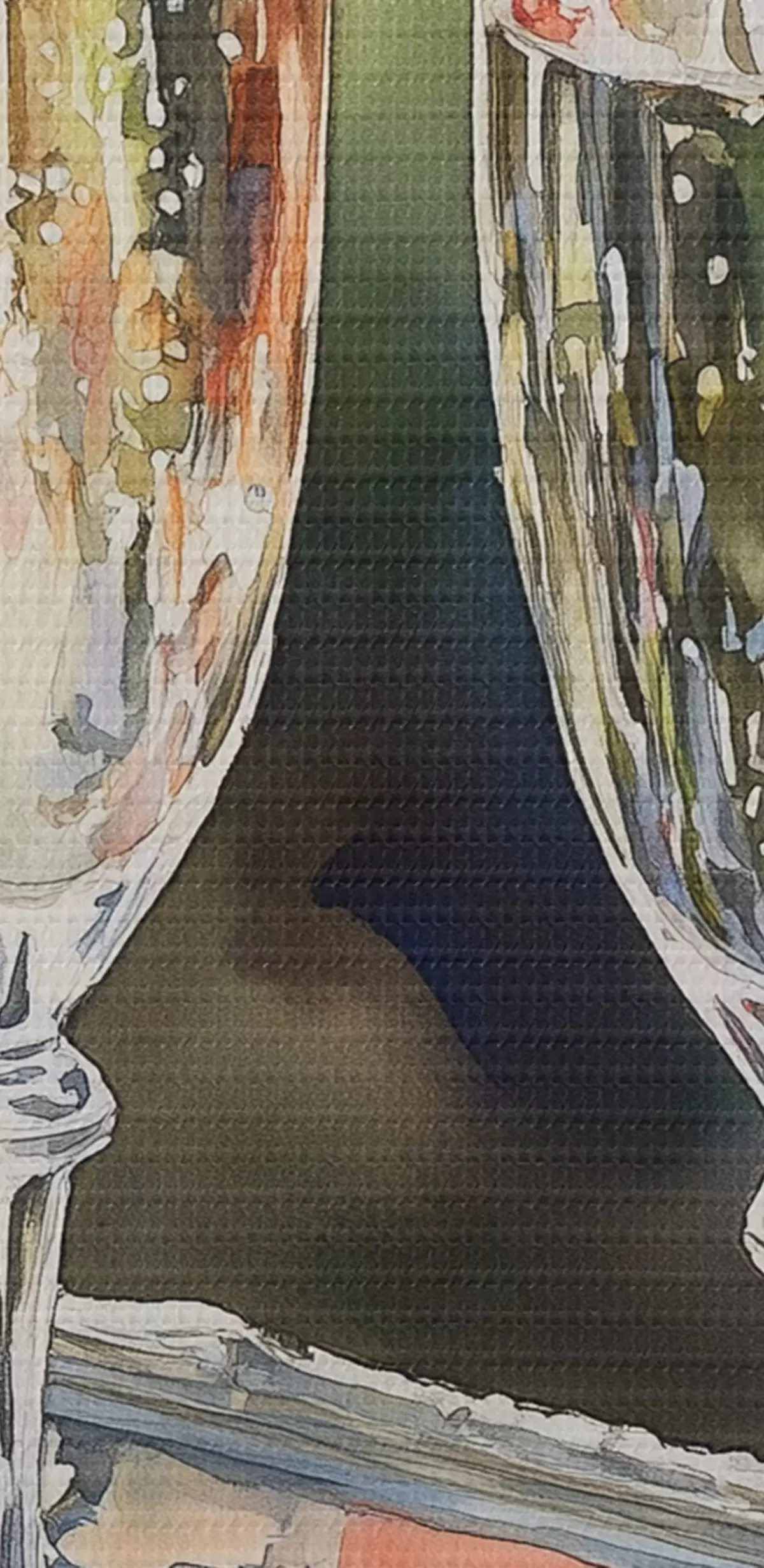 Drobny splot nici na tym płótnie przypomina powierzchnię profesjonalnych płócien artystycznych.